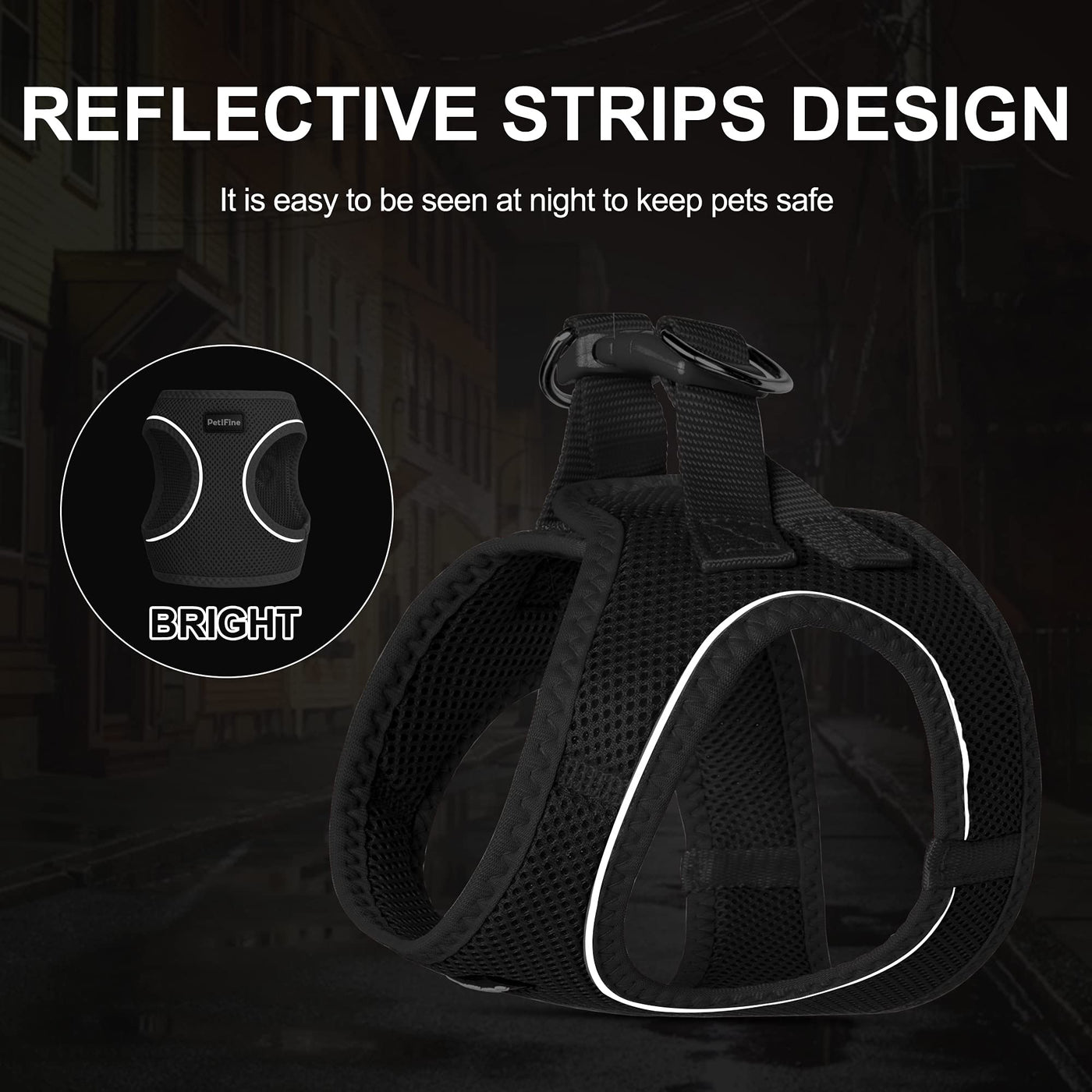 PetiFine Extra Small Step in Dog Harness and Leash Set Cat Harness and Leash Escape Proof All Weather Mesh Reflective Step-in Air Vest Harnesses for Puppy(XXXS Black)
