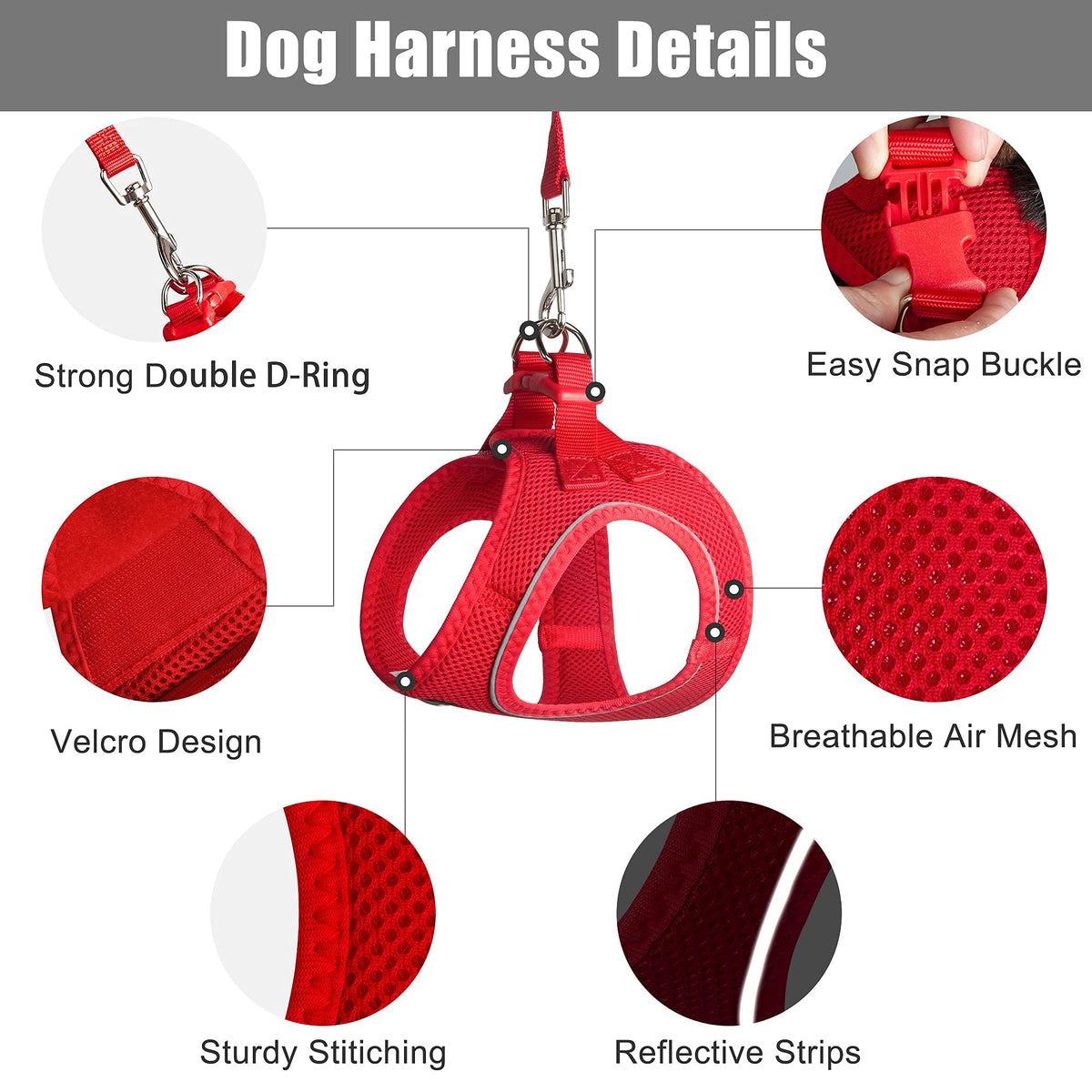 ???Breathable Lightweight Durable?: The step in vest harness has air mesh that featured with breathable lightweight comfortable and quick-dry. Ideal for daily walking jogging training and any outdoor recreations.