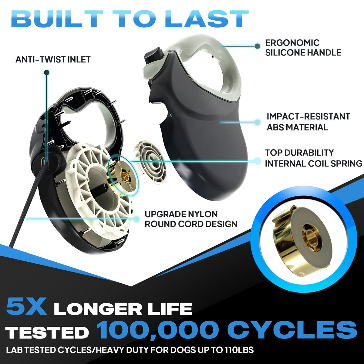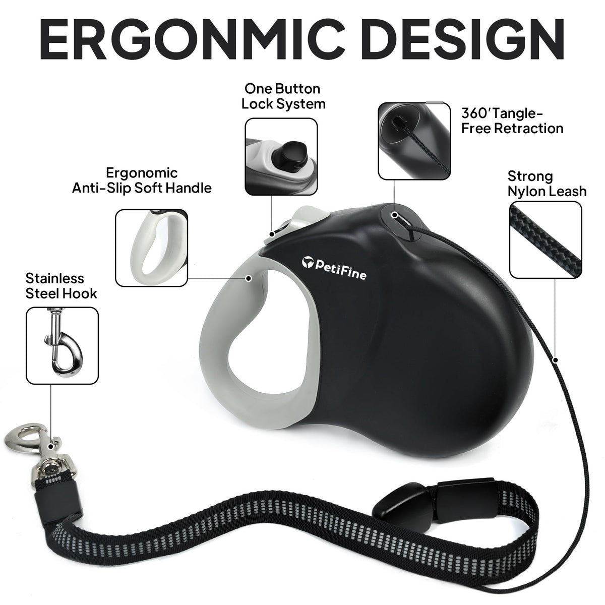 Petifine Retractable Dog Leash,30 Ft Heavy Duty Dog Walking Leash For Medium Large Dogs Up To 110 Lbs, Upgraded No Tangle Long R