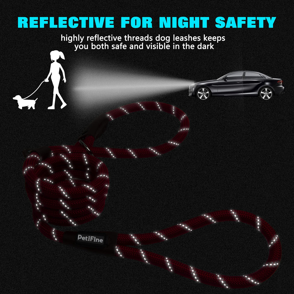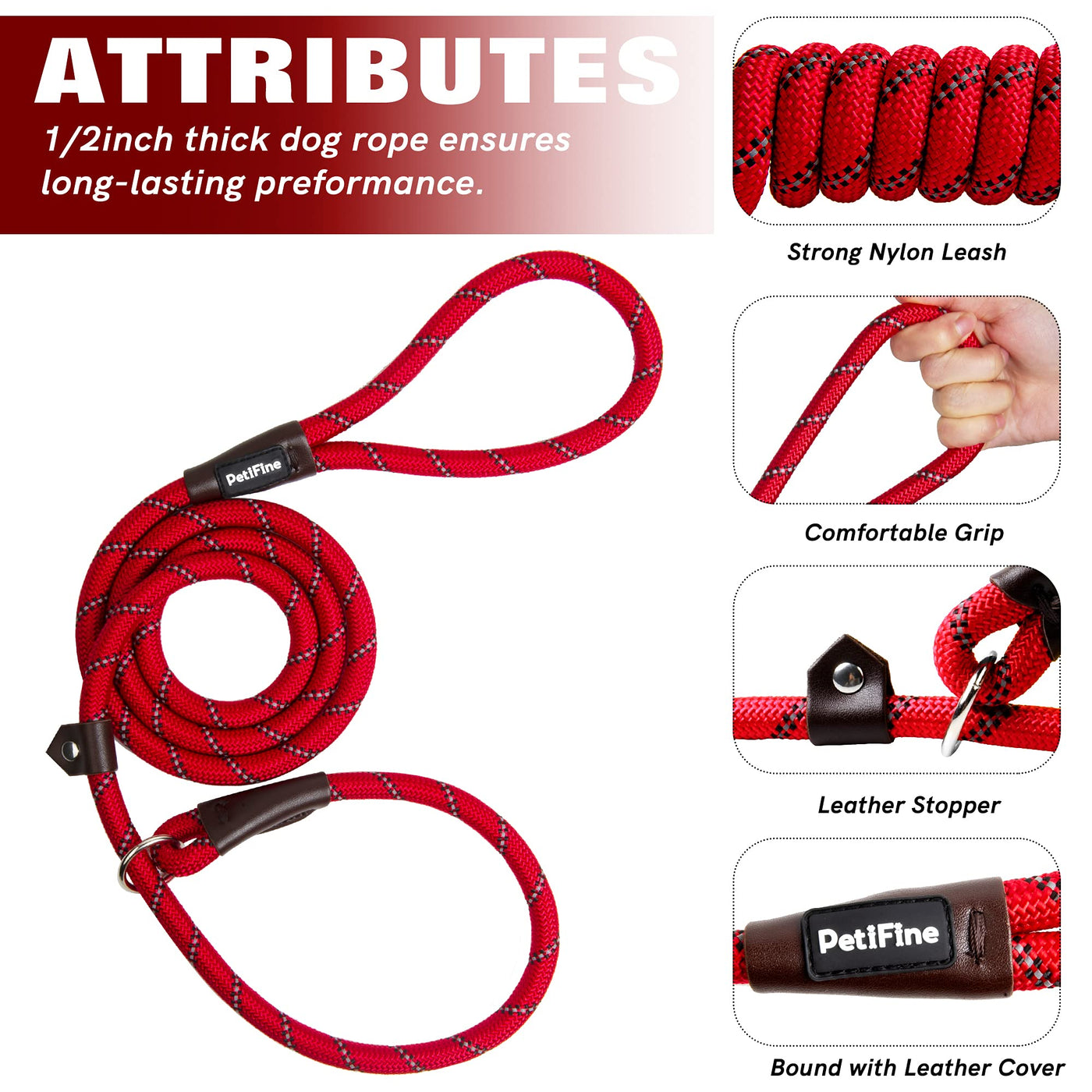 Petifine 6 Ft Premium Quality Slip Lead Dog Rope Leash Is Built With Heavy-Duty Nylon Material. It Is Extremely Durable And Comfortable. Great For Walking , Running And Training. Benefits: One Size Fits All: Our Slipknot Leash With Slide Loop Lets You Customize The Greatest Comfort For Your Dog. It Means That You Don 'T Need An Extra Collar Or Harness And The Fully Adjustable Design Fits All Dogs. High Visibility At Night:This Dog Leash Have Reflective Stitching That Can Improve Security And Can Be Seen More Easily When You Walking Your Dog In The Dark. More Colors To Choose: We Have 7 Different Colors, You Can Choose Your Favorite Color. Dimensions:6Ft Long, 0.5In Wide Dog Rope Leash Give Your Dog Enough Freedom And Ideal Control In Almost Any Situation. Warm Tip: Please Don 'T Allow Your Dog To Chew This Leash.