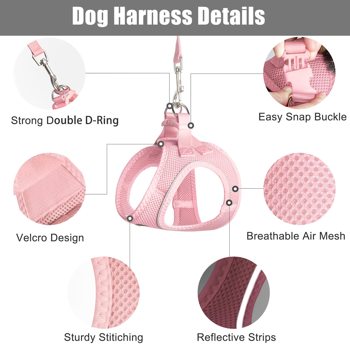 PetiFine Step in Small Dog Harness and Leash Set Breathable All Weather Air Mesh Reflective Escape Proof Step-in Vest Harnesses for Puppy(S Pink)