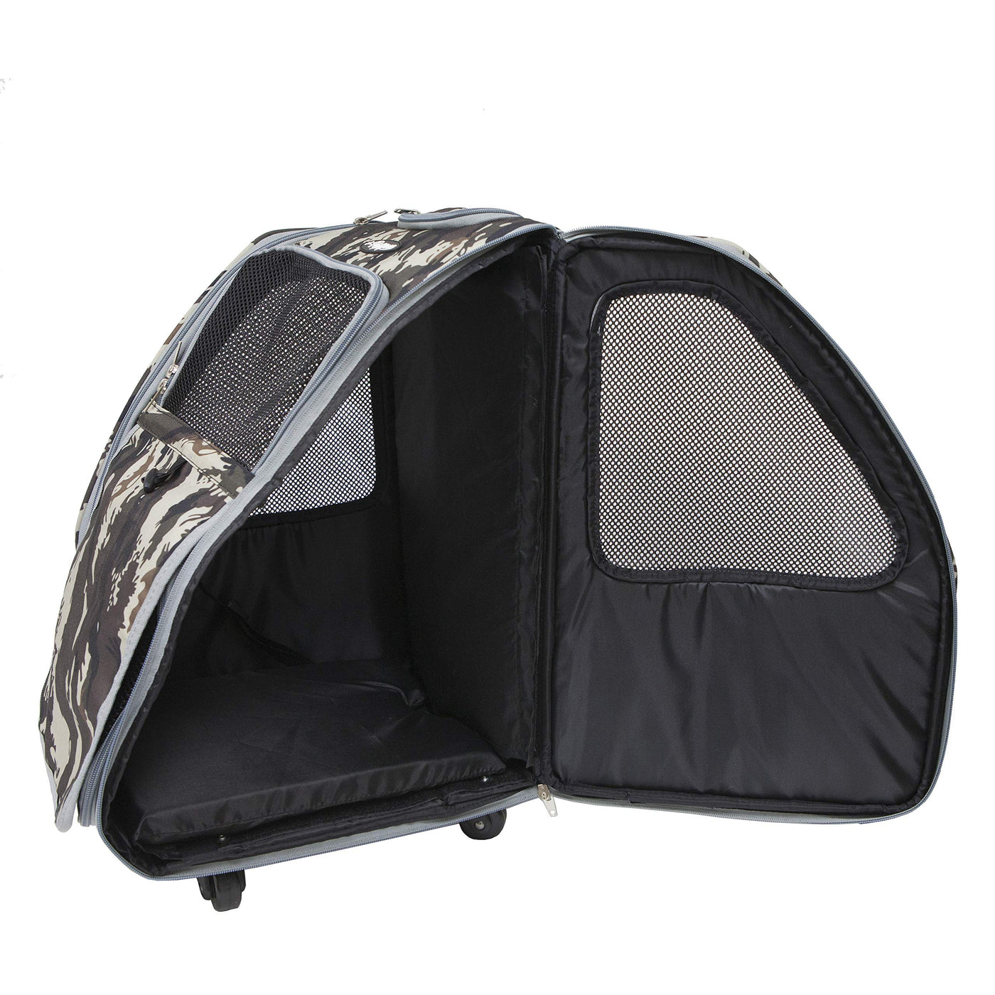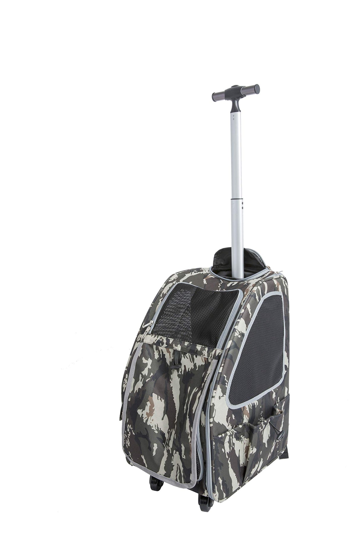 Petique 5-In-1 Complete Travel System With Pet Carrier And Pet Stroller, Stainless Steel Shock Absorption Bike Tires, Sturdy, Lightweight, Large Storage Basket, Supports Pets Up To 25Lbs - Army Camo