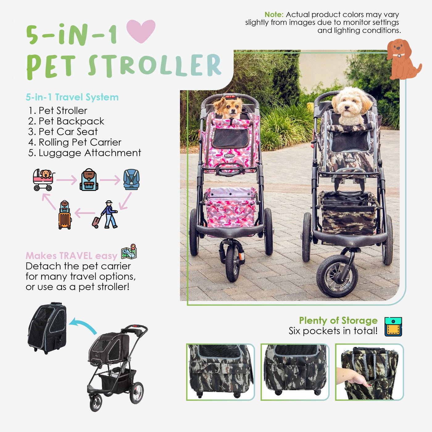 Petique Sunset Strip 5-In-1 Complete Travel System With Pet Carrier And Pet Stroller For Dogs And Cats
