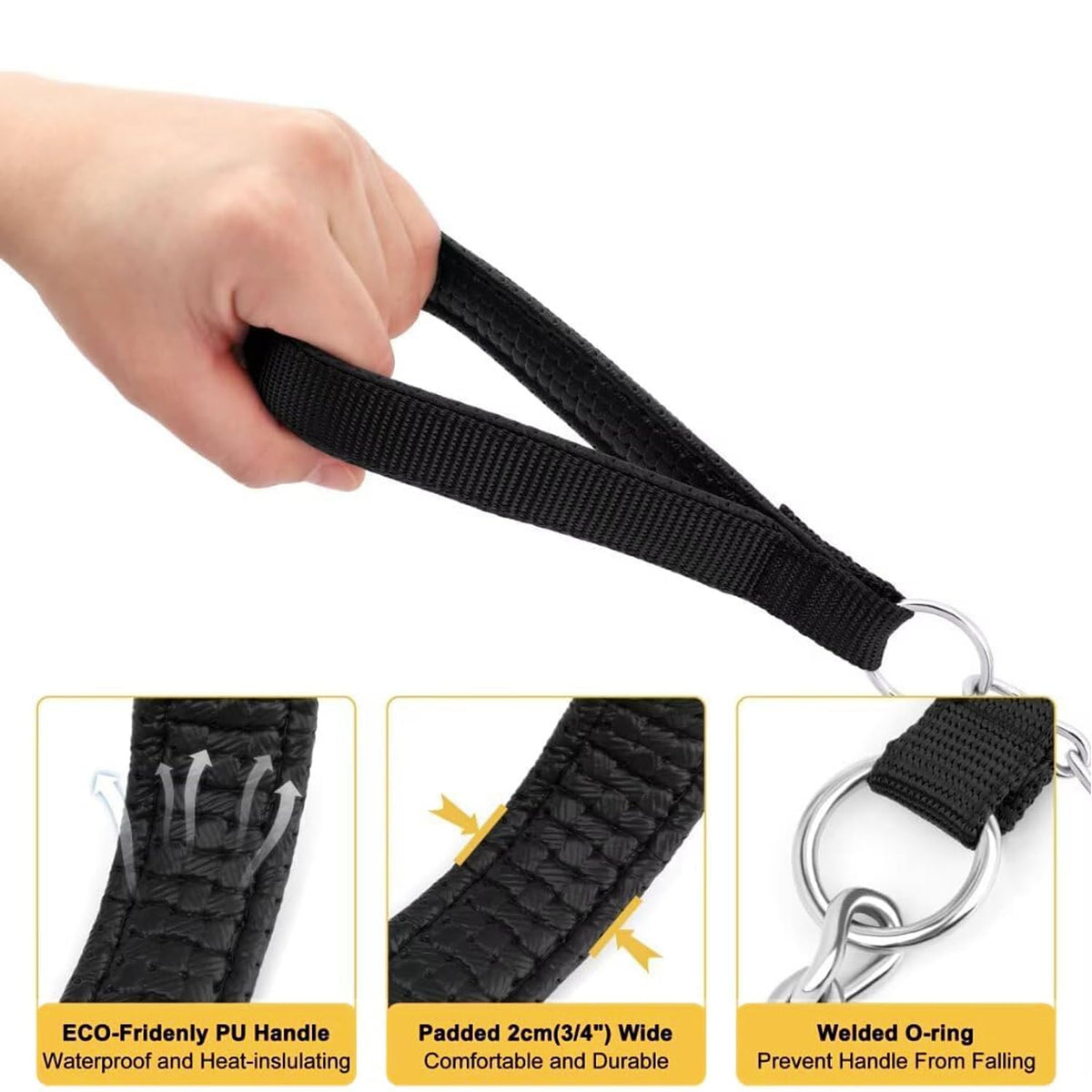 Petiry 7 Feet Chain Leash Chew Proof Metal Dog Leash With Soft Padded Handle,Black