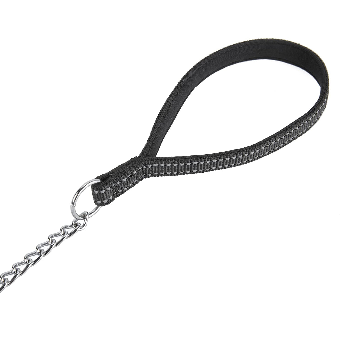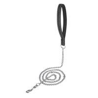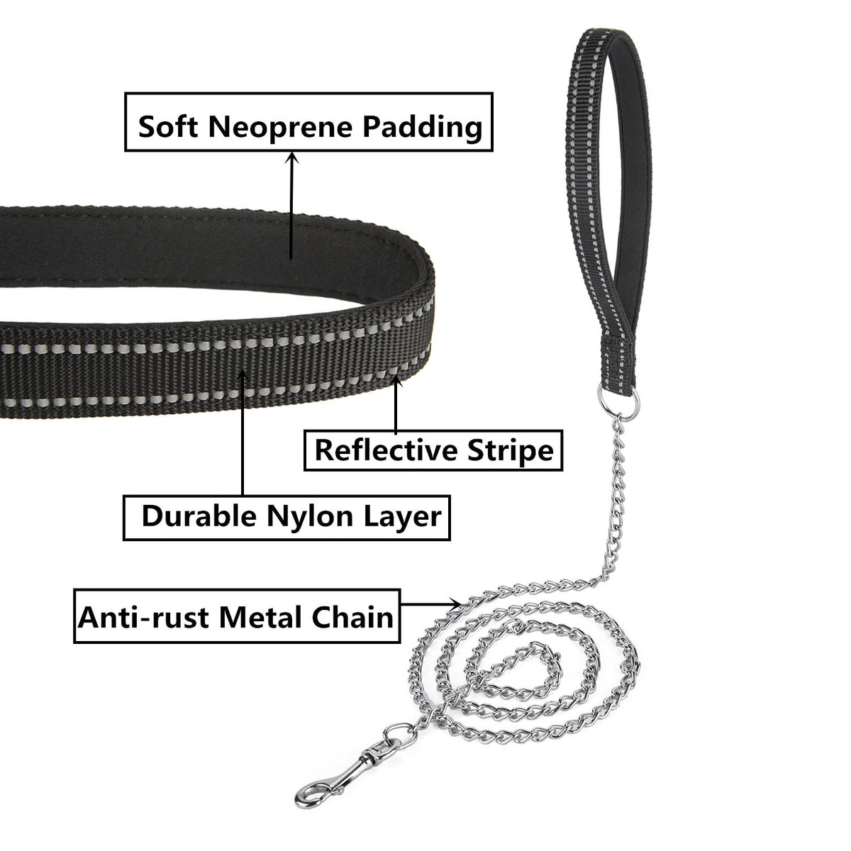 Petiry Chew Proof Metal Chain Leash,Nylon Handle With Soft Neoprene Padding And Reflective Stripe For Medium Dogs.(M, Black Hand