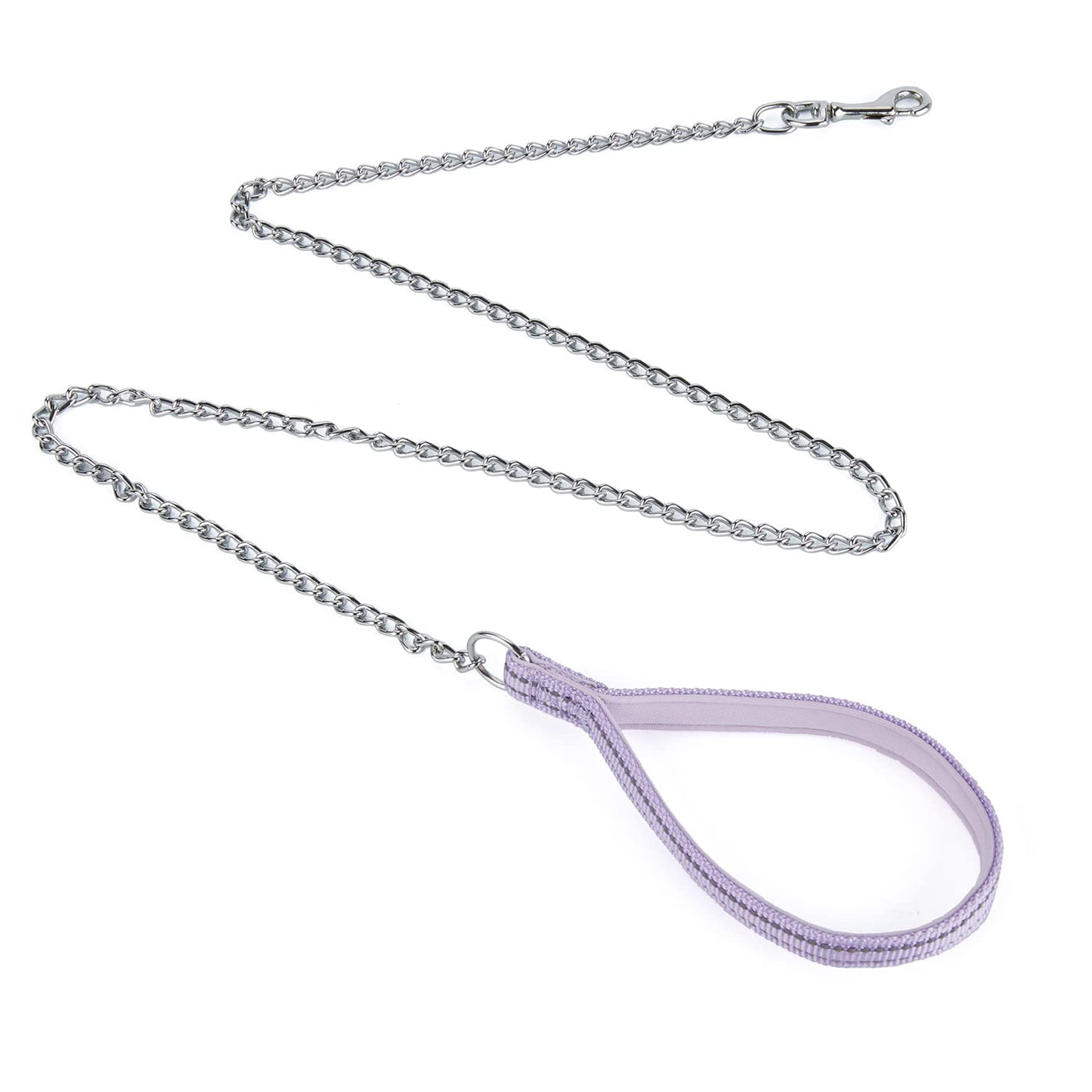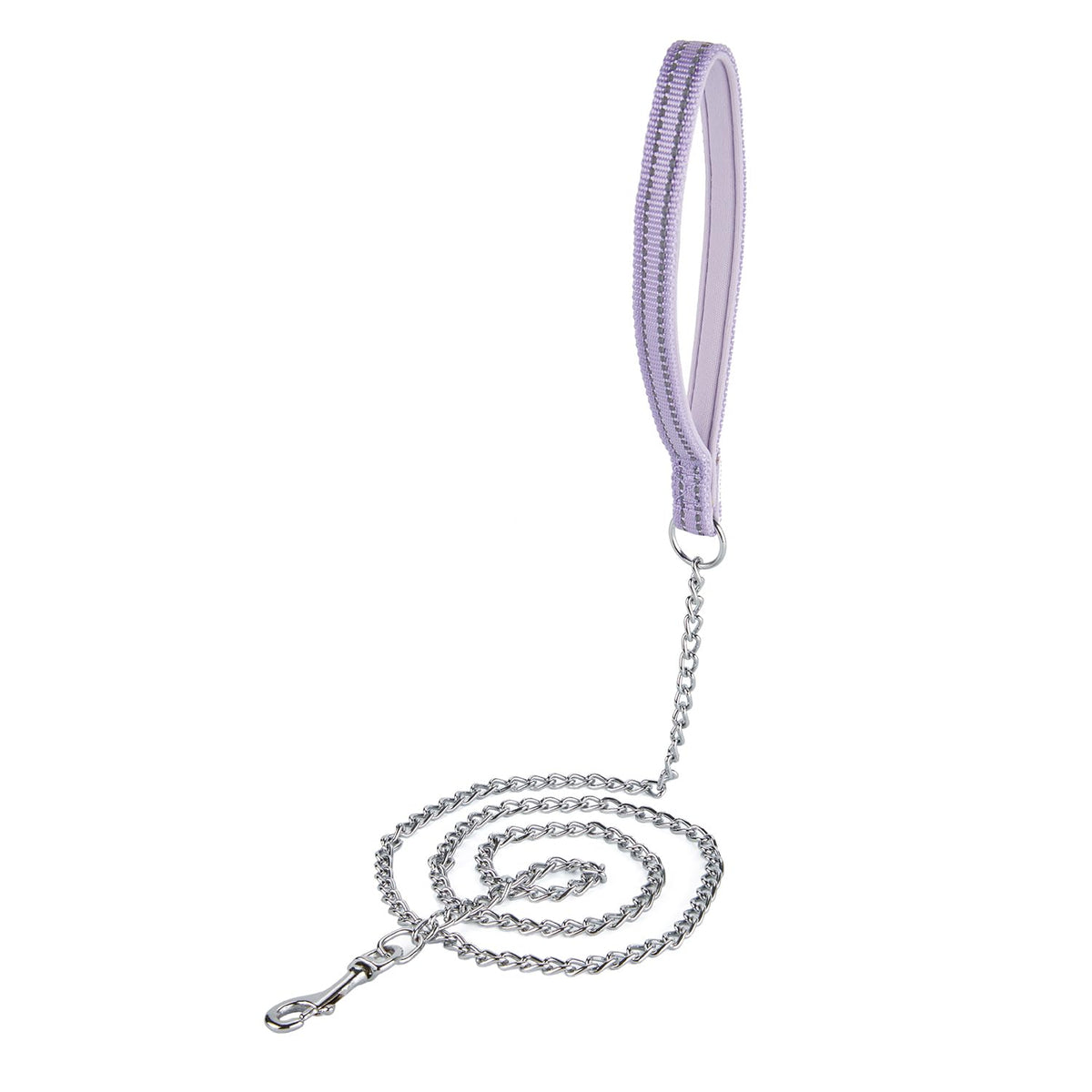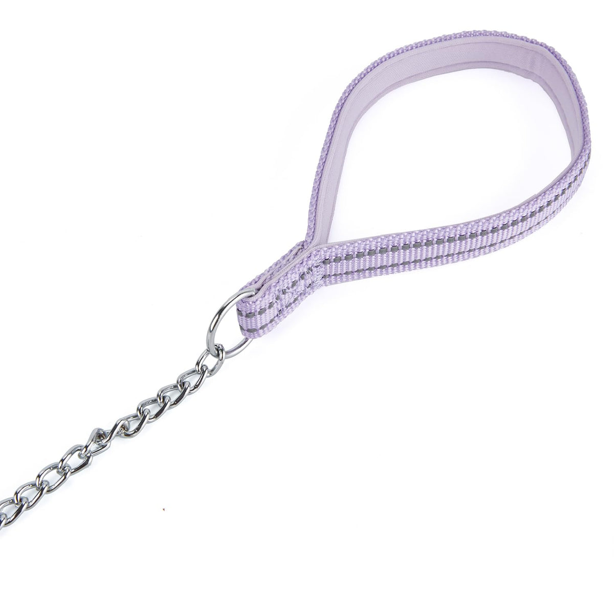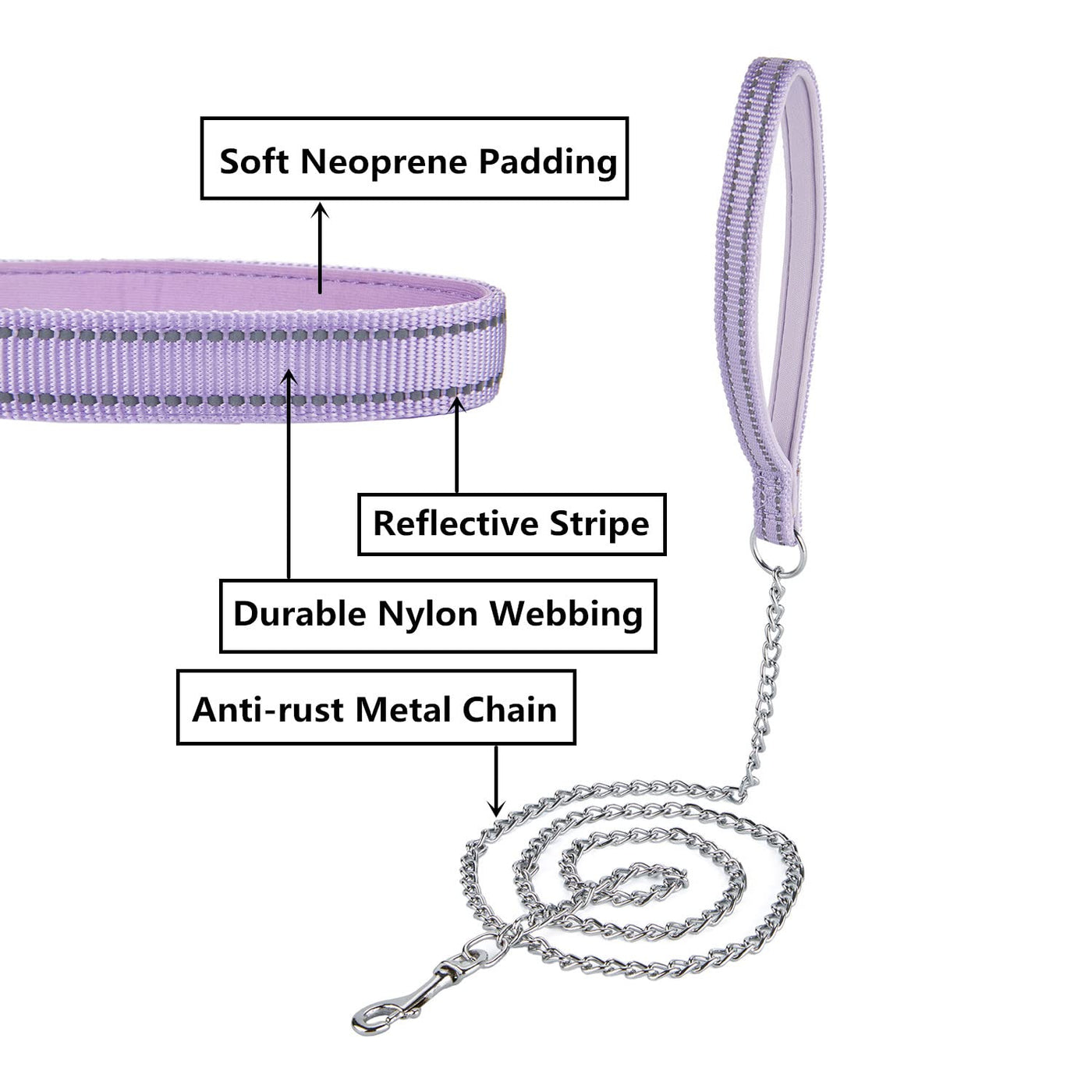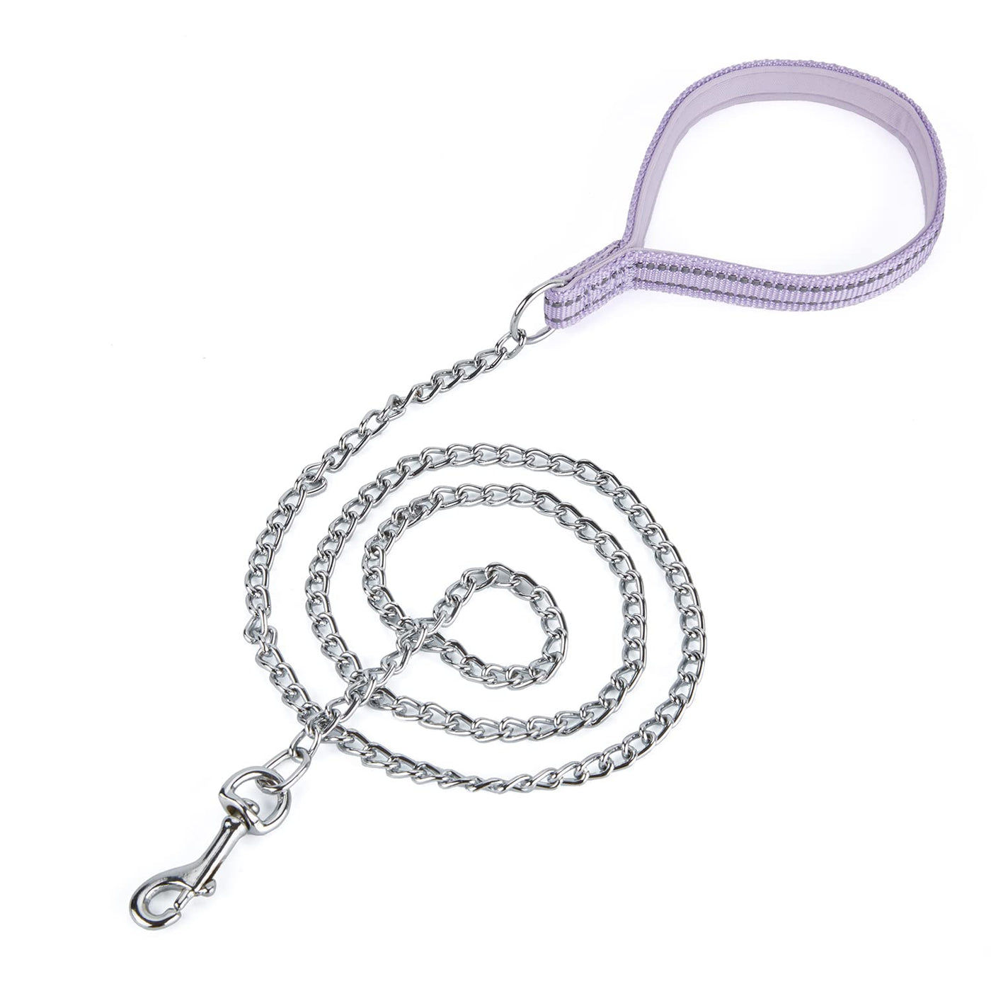 Petiry Chew Proof Metal Chain Leash,Nylon Handle With Soft Neoprene Padding And Reflective Stripe For Medium Dogs.(M, Purple Han