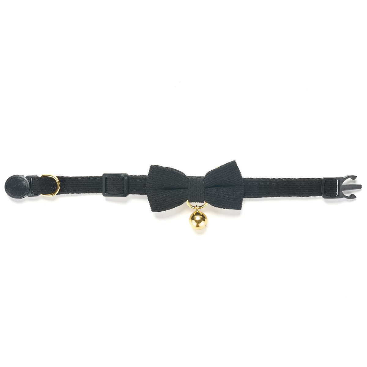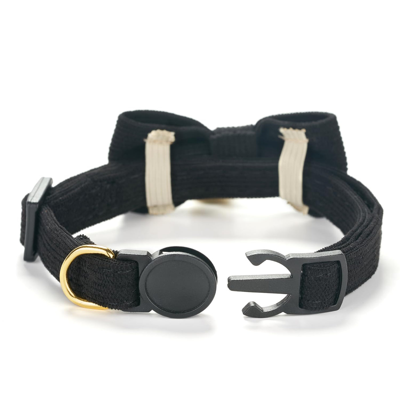 Petiry Soft Corduroy Cat Collar, Plaid Pattern, With Bell And Bowtie, Safety Breakaway Clasp, Adjustable For Kitten And Cats Bla