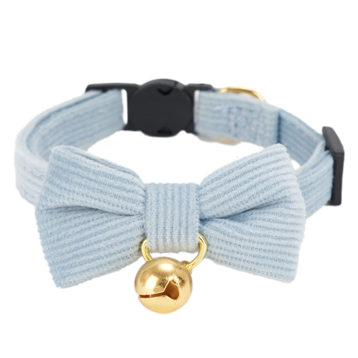 Petiry Soft Corduroy Cat Collar, Plaid Pattern, With Bell And Bowtie, Safety Breakaway Clasp, Adjustable For Kitten And Cats Blu