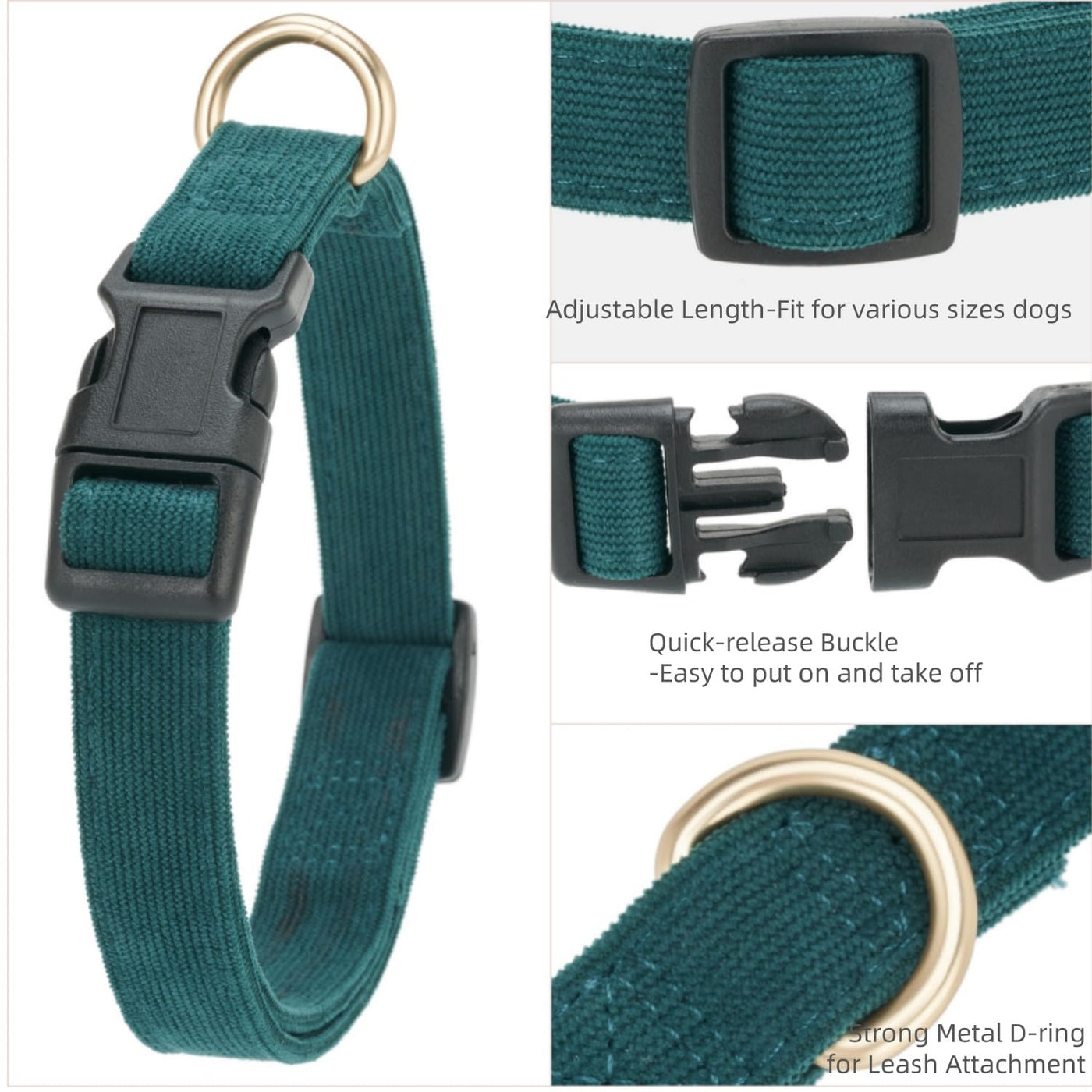 Petiry Soft Corduroy Fibric Dog Collar, Quick Side Release Buckle, For Large Dogs.(Green,Large:17-26)