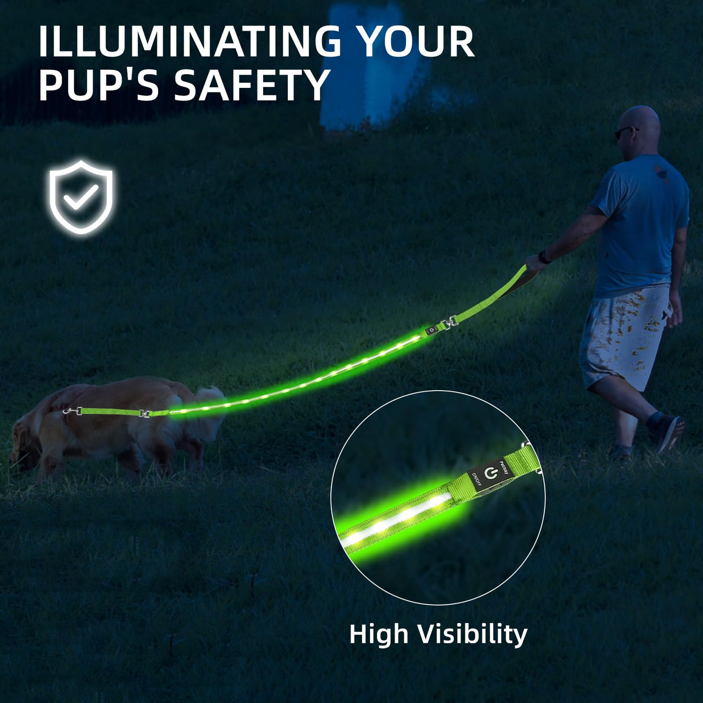 Petisay Light Up Dog Leash For Night Walking - Usb C Rechargeable - Waterproof - Dog Leashes With Flashlight - Led Leash For Dog