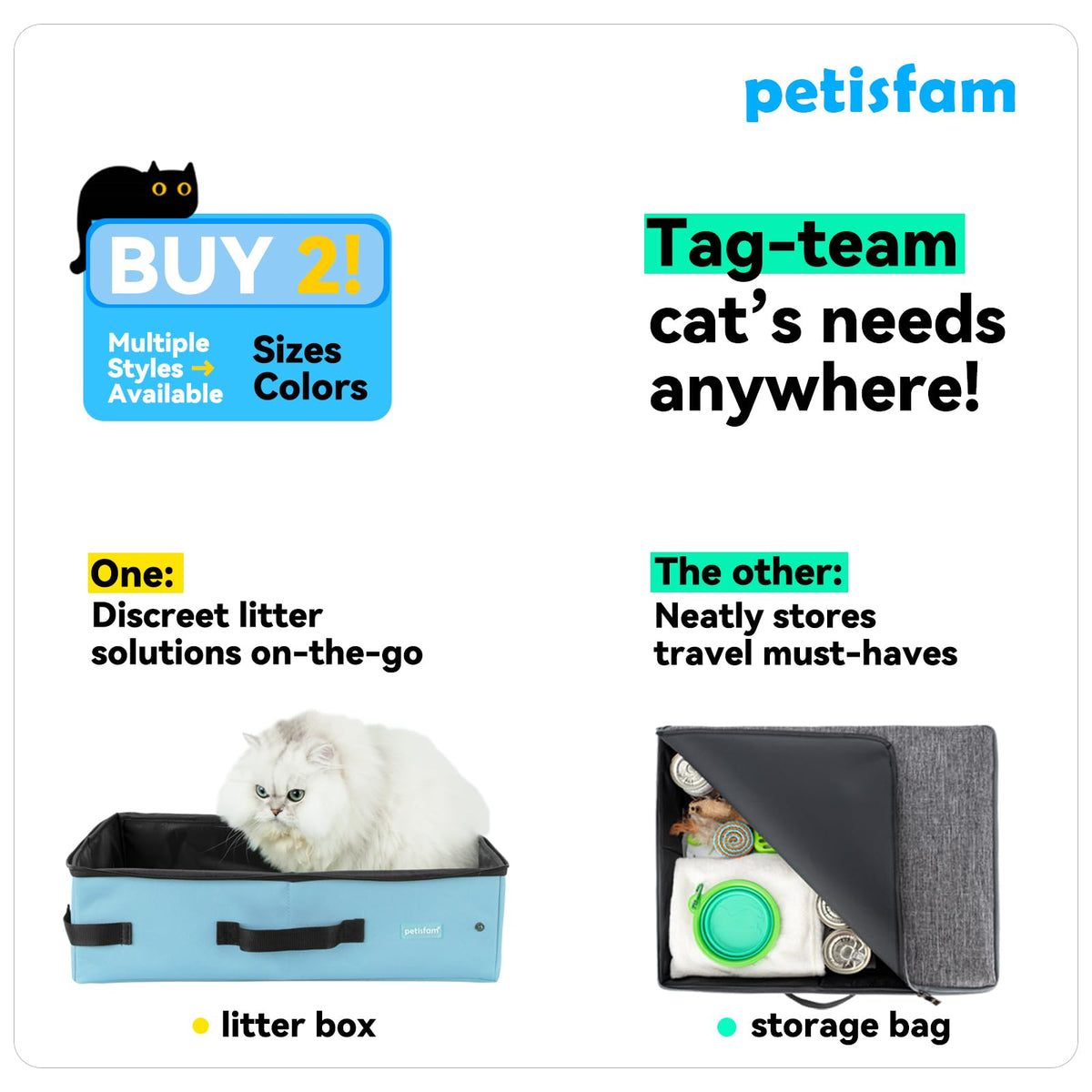 Petisfam! Pet Is Family. Its Exactly That Focus Led Us To Make The Comprehensive Pet Product Range. Created By Pet Loving Designers With Support From Trained Veterinarians. The Petisfam Collapsible Cat Travel Litter Box Offers A Easy Way To Accommodate Cats Bathroom Needs. Save Your Life While Road Trip With Cats, Or Traveling On An Airplane. Super Easy To Carry Litter To And From Hotels And Houses. Unobtrusive To Carry In, Much Less Embarrassing! You Dont Have To Carry A Nasty Hard Box Through The Hotel Lobby. Zip Up And Go! No Leakage And Odor Free. 100% Satisfaction Guaranteed. All Petisfam Product Can Be Returned In Its Original Condition For A Full Refund Or Replacement Within 30 Days Of Receipt.