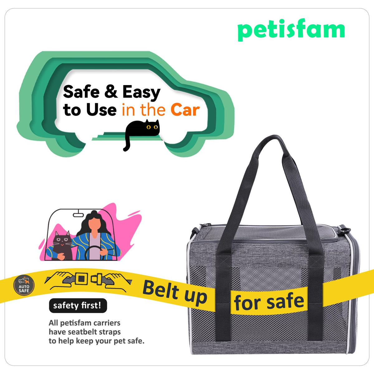 Pet is family. Its precisely that focus that led petisfam to make a comprehensive pet product range. This petisfam pet carrier was designed by pet-loving designers with support from trained veterinarians which will offer a safe, comfortable, and convenient way to transport your pets. Please contact us if you are unsatisfied or have received a damaged product. It s free to return the item for any reason and get a full refund, free to replace a new item, and free to exchange for a different size or color. petisfam Large Soft-Sided Pet Carrier is Great for Cats That Don t Like Carriers