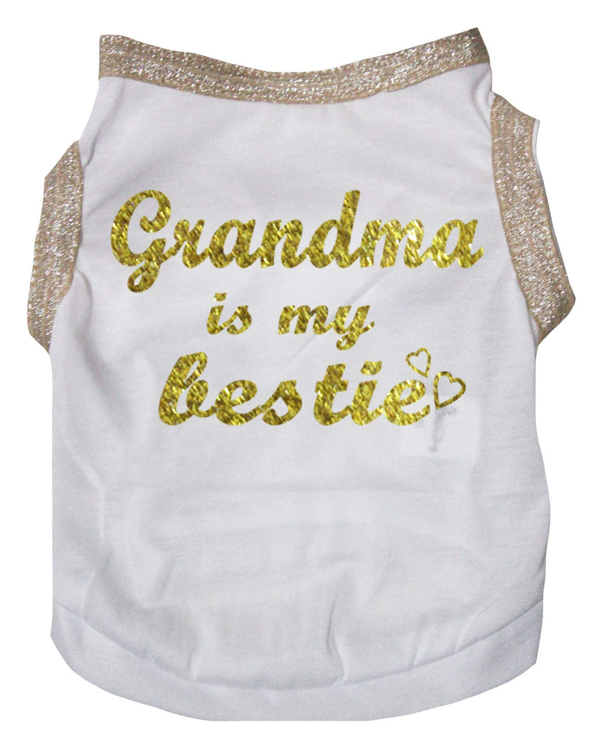 Petitebella Grandma Is My Bestie Puppy Dog Shirt (White/Gold, Medium)