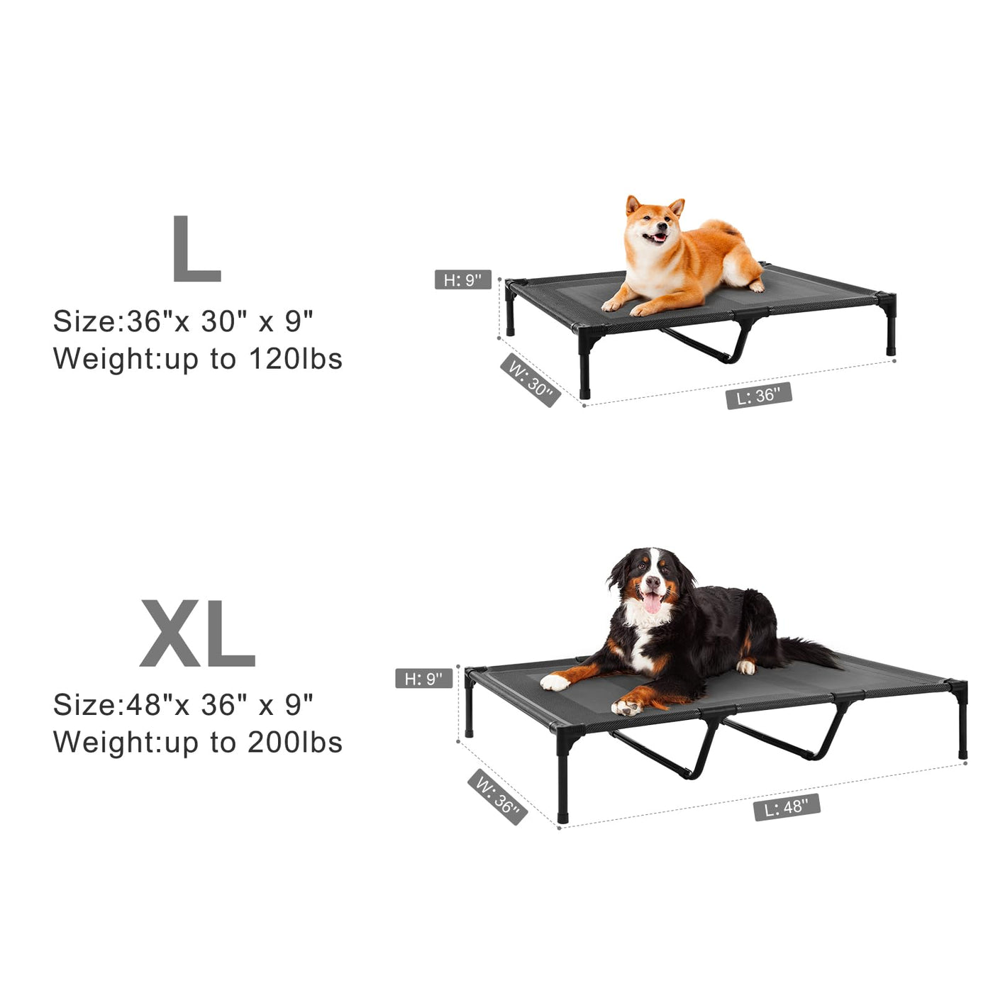 Petizer 48'' Elevated Dog Bed For Extra Large Dogs, Outdoor Dog Cot Bed Waterproof, Raised Cooling Pet Bed, Washable Breathable
