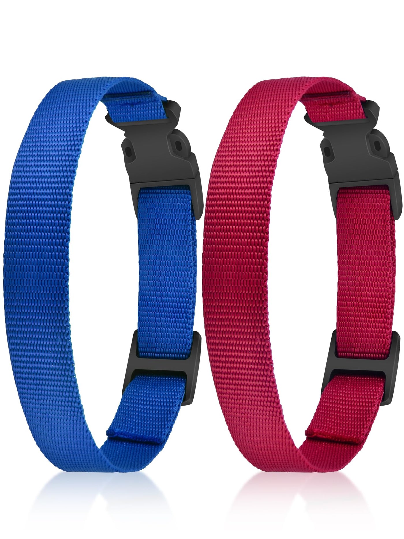 Petjoy Replacement Collar Strap For Bark And Shock Collars, 8-27 Inches Adjustable E-Collar (2-Pack Blue & Red)