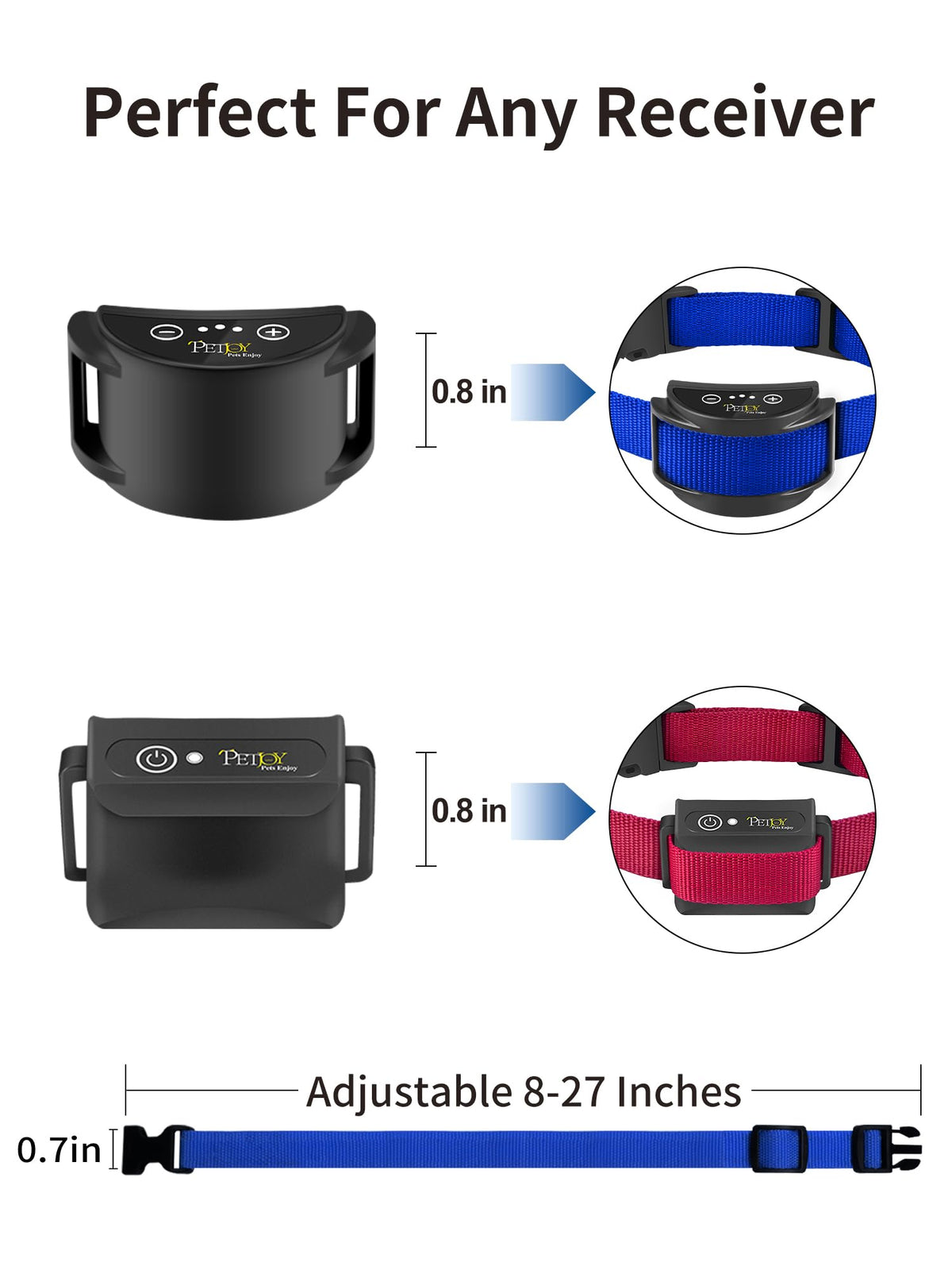 Petjoy Replacement Collar Strap For Bark Collar, Dog Replacement Collar For Shock Collar, E Collar Replacement Strap,8-27 Inches Adjustable Dog Collar (2-Pack Blue & Red) This Replacement Dog Collar For Shock Collar Is Made Of Comfortable, Soft, Strong, Durable And Lightweight Nylon Material. Its A Perfect Universal Replacement Dog Collar Strap For Training And Bark Collar Devices.