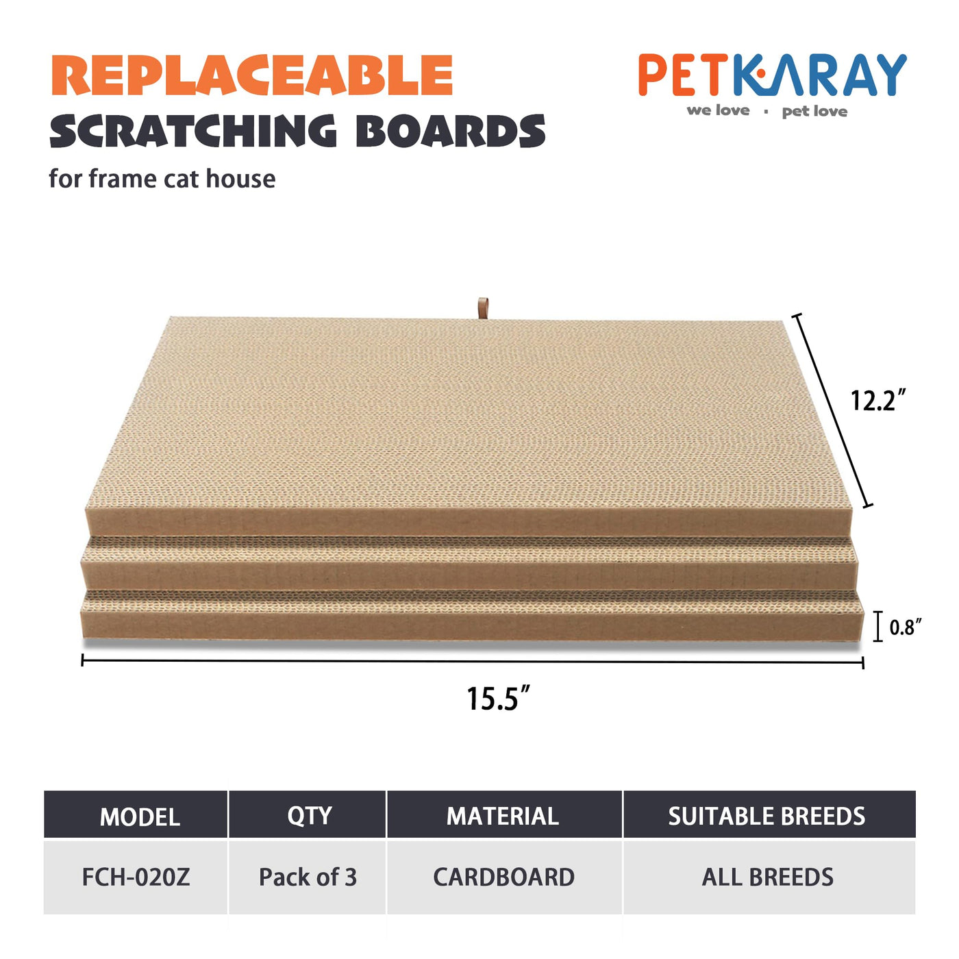 Petkaray Replacement Scratching Boards For Frame Cat House, Cardboard Scratch Pad For Indoor Cats, Pack Of 3