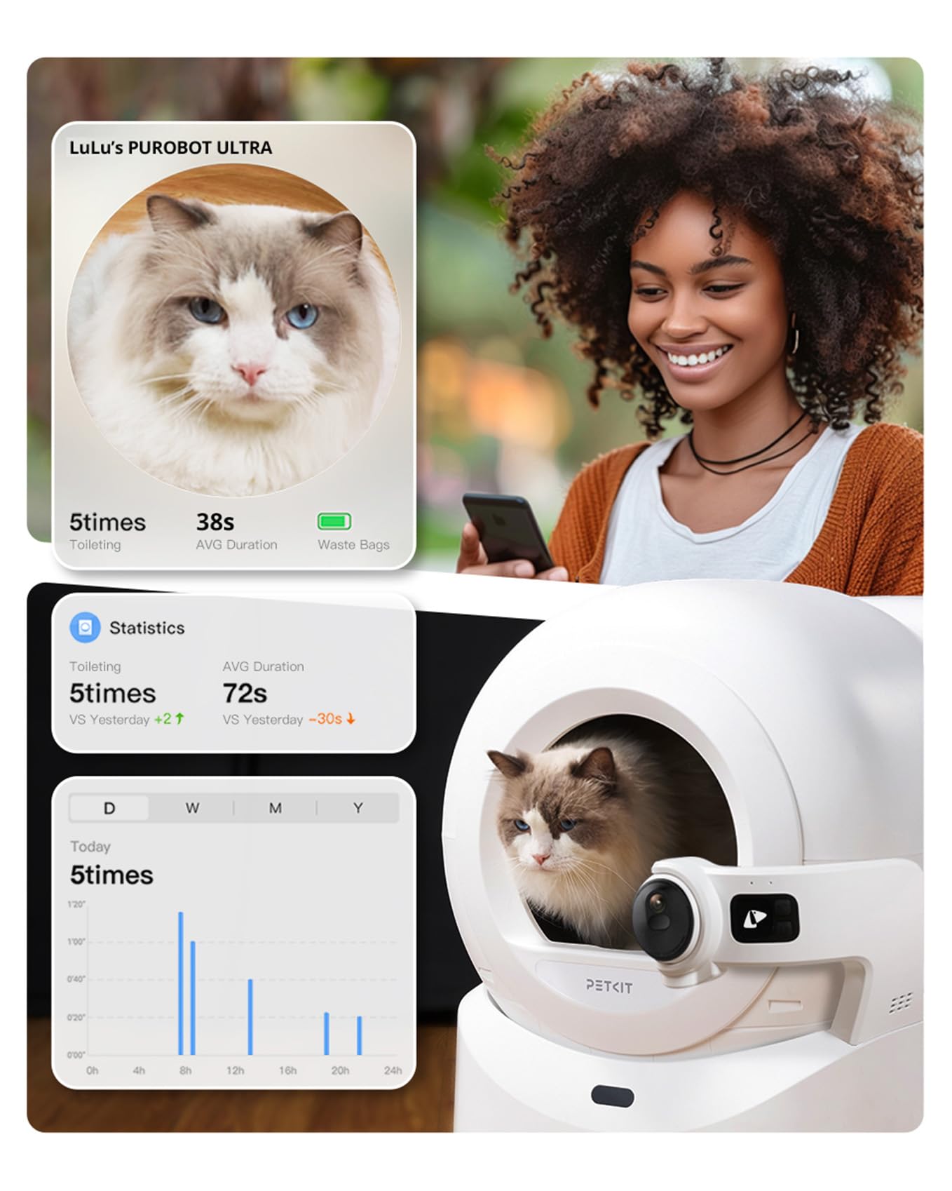 Petkit 2025 New Purobot Ultra Automatic Waste Packing Self-Cleaning Cat Litter Box With Ai Camera, 5G Wifi Phone App Control, Tr