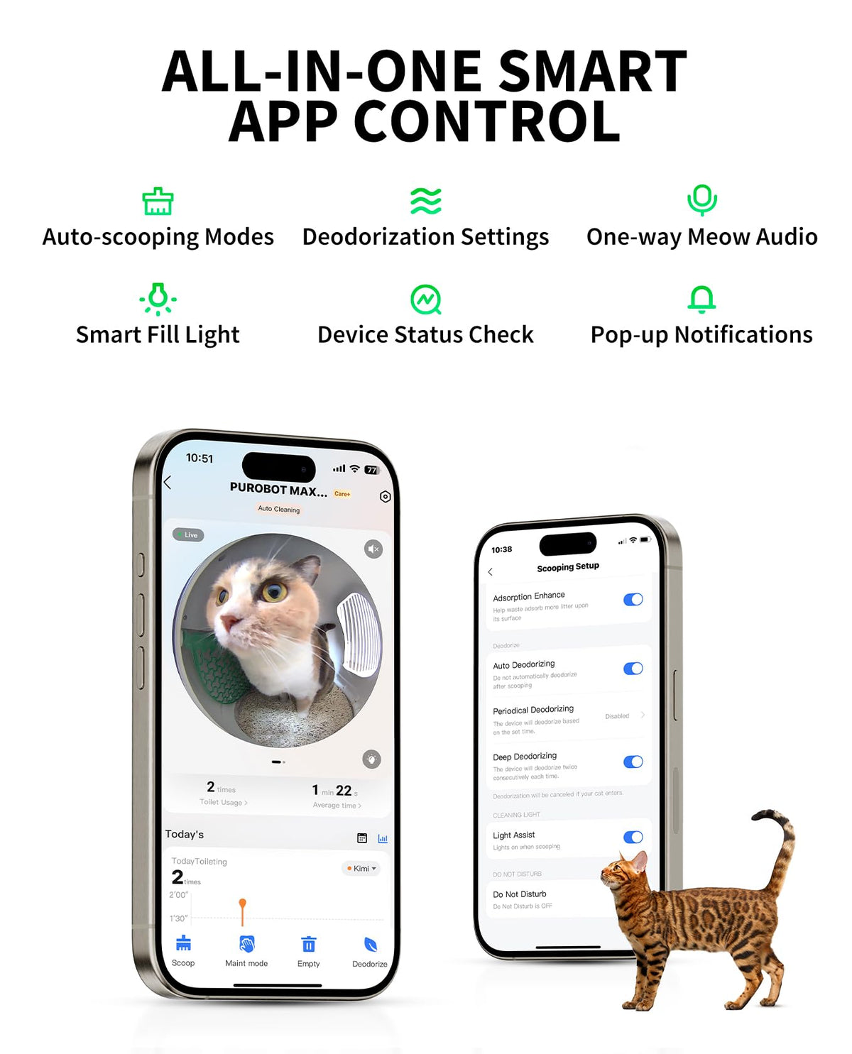 Petkit 2025 Purobot Max Pro Ai-Camera Self Cleaning Cat Litter Box, 210 Wide Angle Lens, Automatic Cat Litter Box For Multiple C