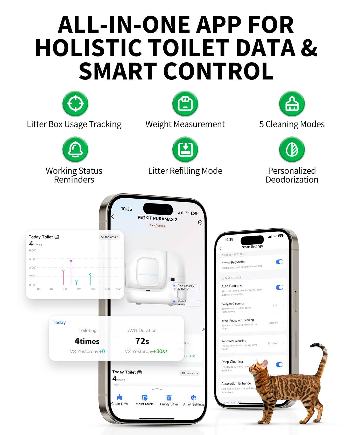 PETKIT PuraMax 2 Automatic Self-Cleaning Cat Litter Box, App Control Scoop-Free Litter Box with Anti-Leakage Waterproof Litter Pad Max, 2.4G WiFi, Basic Bundle Includes N50 2.0 and 1 Roll Trash Bag