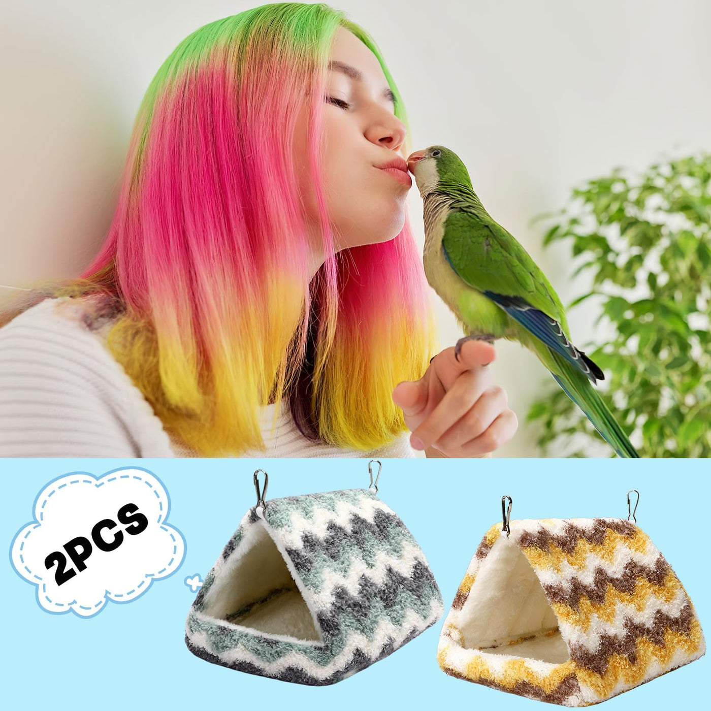 PETKNOWS 2 Pack Bird Nest House, Hanging Hammock Fluffy Parrots Bird Bed for Cage Bird Plush Nest Toy for Parrot Macaw Budgies E