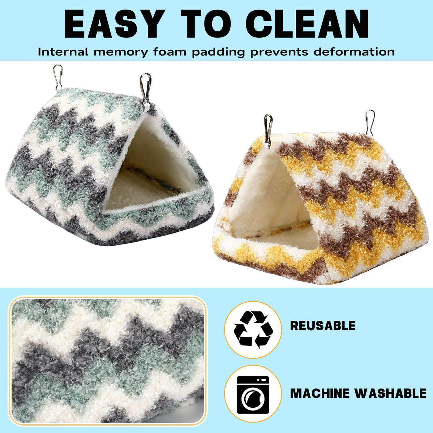 Intimate Gift: The opening of the bird nests is fixed with wire to keep the shape unchanged, and the soft fabric makes bird bed warmer. Parakeet bed is the ideal gifts for family and friends who raise parrots or birds. Safety Design: The soft and well-sewn plush fabric is not only comfortable and warm, but also can effectively avoid the parrots legs from being entangled, providing additional safety protection, making your pet bird feel at ease during use. Flexible Positioning: The hanging mode is very flexible, and the position can be adjusted at any time according to your needs to ensure that birds can live in the suitable place, and at the same time, parakeet nest can be quickly adjusted according to the actual situation. Whether used as a warm haven in winter or a place for daily rest, the size can meet the needs of different kinds of birds and help them spend the cold season or daily rest The hanging bird house is not only a habitat for birds, but also ideal accessory for decorating birdcages or homes. The lovely appearance and comfortable materials make bird hammock a good choice to enhance the home atmosphere