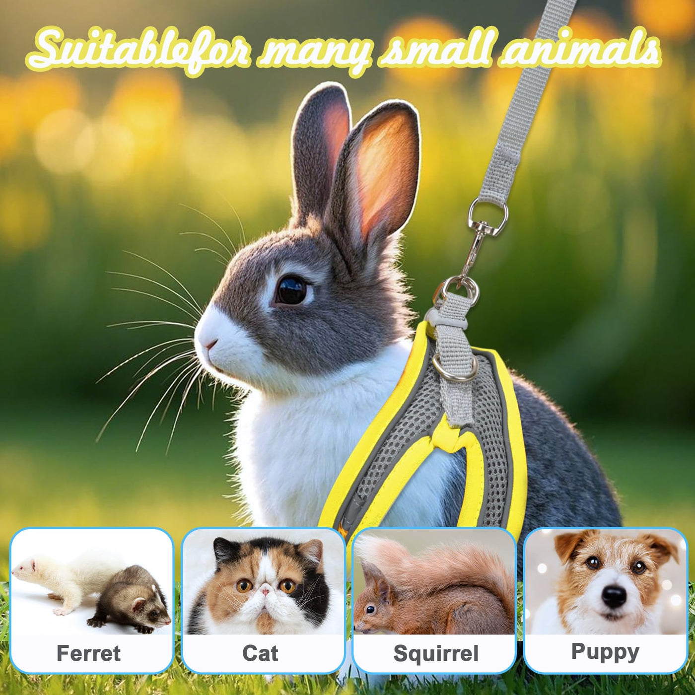 Petknows 2 Pack Rabbit Harness And Leash Set, Double Buckle Bunny Harness With Reflective Strips Soft Breathable Mesh Vest Harne