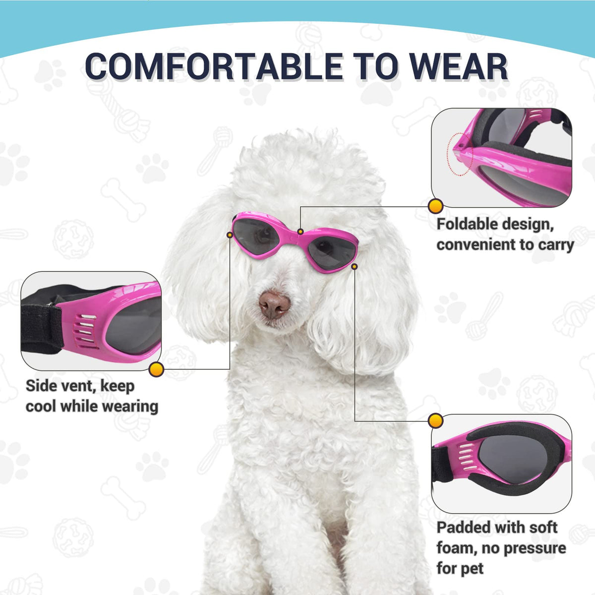 Q: Can I use these goggles for my dog during winter activities?A: Absolutely! These goggles are windproof and snow-resistant, making them ideal for winter activities such as walking, cycling, or driving in cold weather.