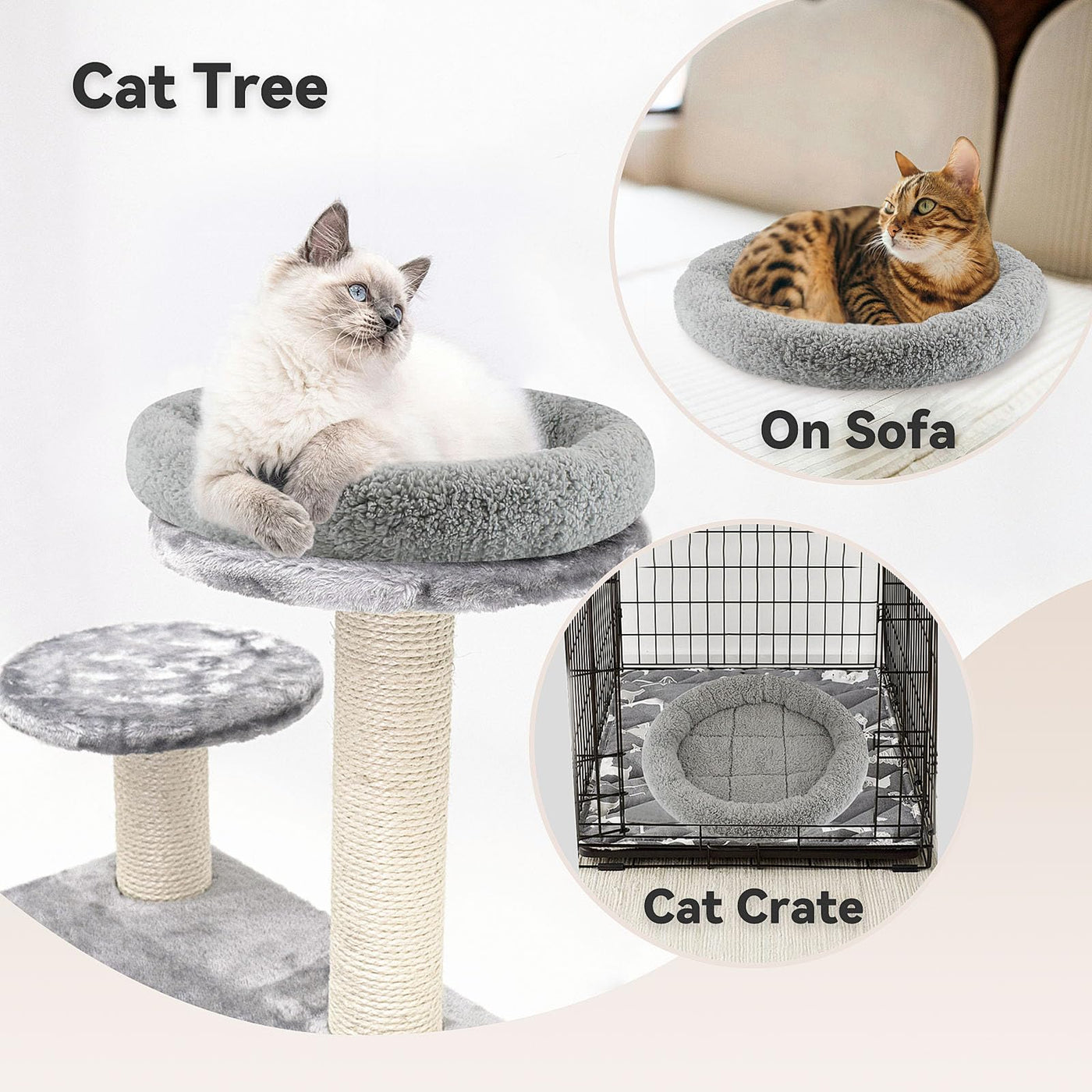 PETLESO Raised Pet Bed Mat - Cozy Comfort for Cats, Dogs & Rabbits The polycotton padding ensures year-round comfort, while the 2 height pillow around the rim provides gentle neck and vertebra support-ideal for pets who love curling up. The raised rim design creates a secure haven, reducing anxiety and promoting deeper sleep. Fits on floors, desks, car seats, or circular/square cat trees-perfect for indoor/outdoor use. The anti-skid bottom prevents shifting, making it safe for pets to climb on/off, especially for older or injured animals. Provide your baby a best sleeping environment! Give your pet a warm, secure space to rest.