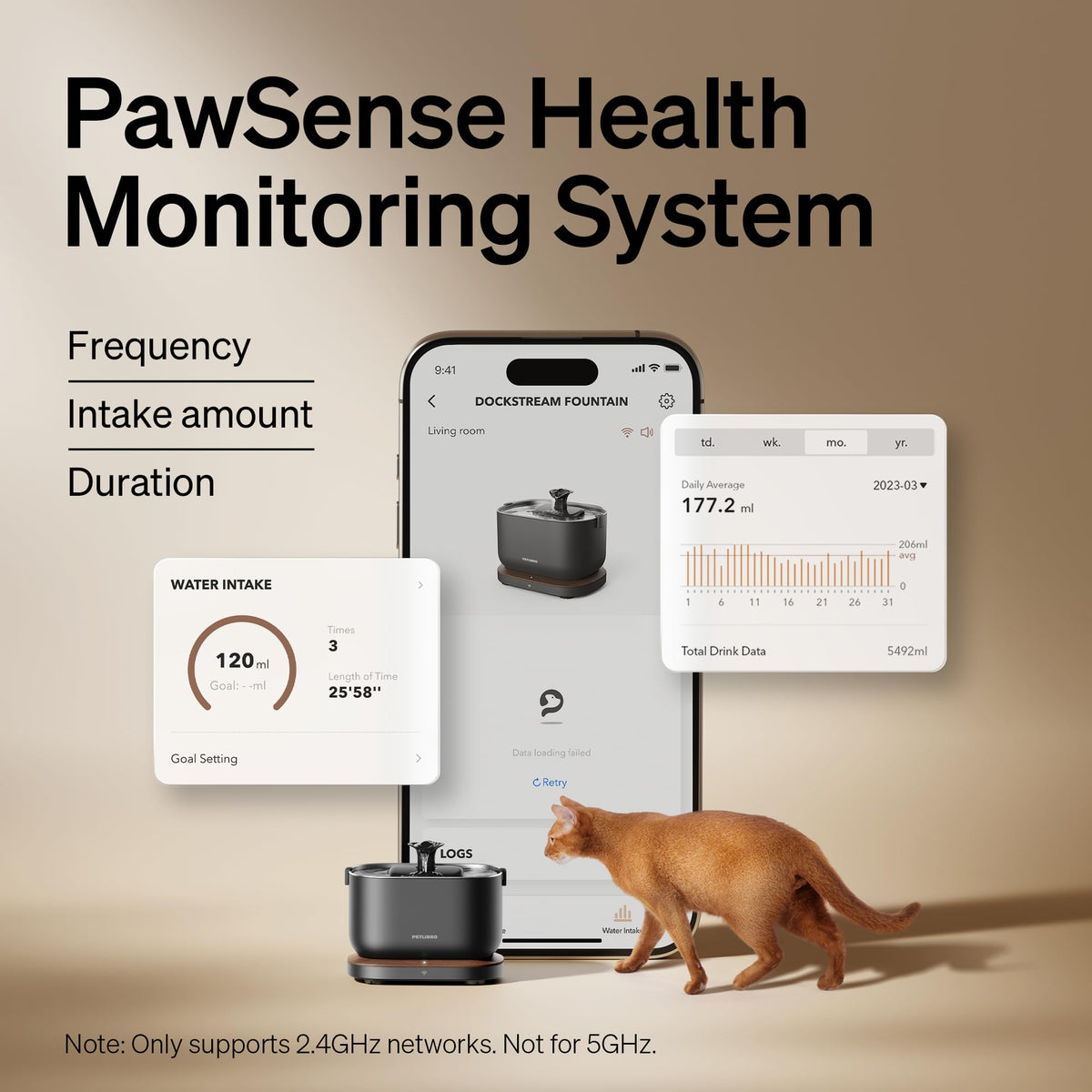 PETLIBRO Cat Water Fountain, App Monitoring Pet Fountains for Cats Indoor with Stainless Steel Tray, 2.5L/84oz Dockstream Automa