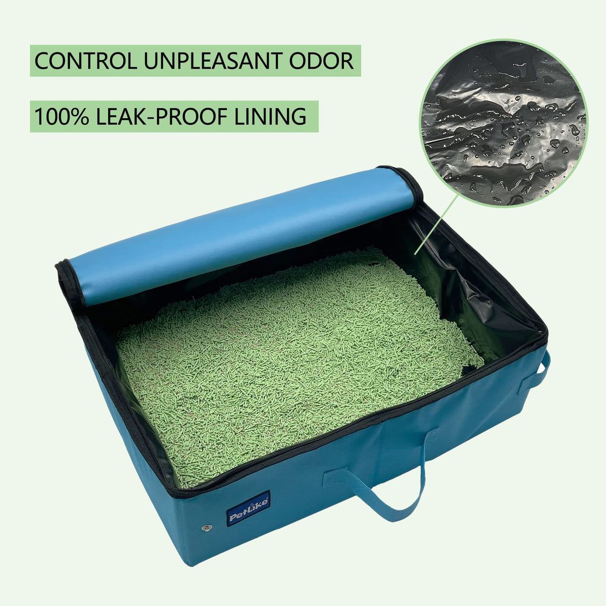 Petlike Travel Cat Litter Box, Leak-Proof Portable Litter Box, Collapsible Toilet Tray Carrier For Small Medium Cats (Large, Aqu