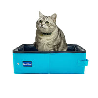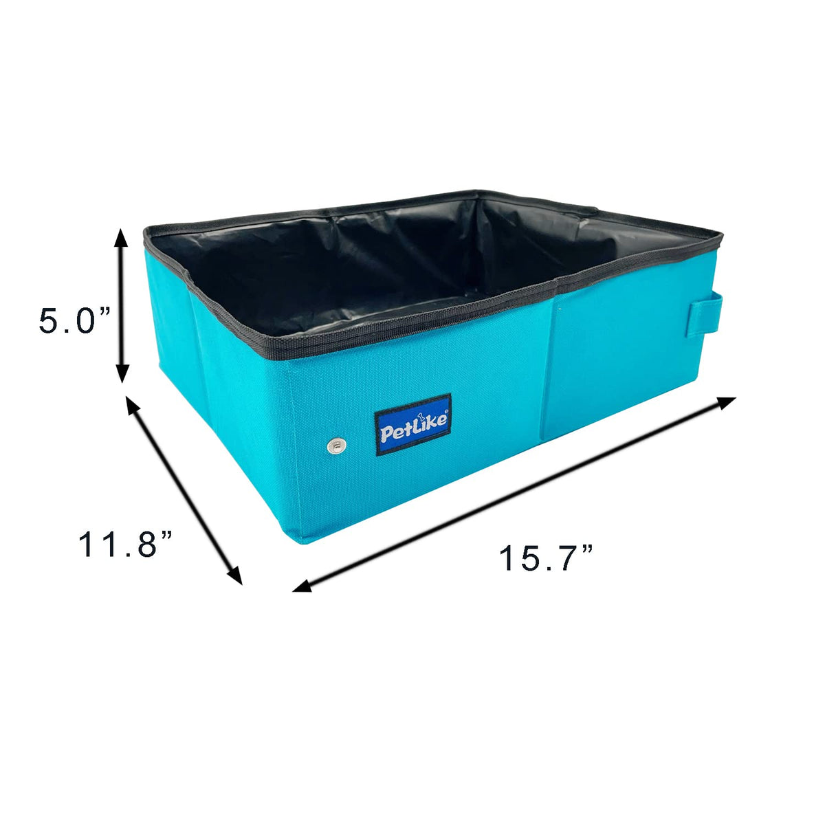 Petlike Travel Cat Litter Box, Leak-Proof Portable Litter Box, Collapsible Toilet Tray Carrier For Small Medium Cats (Medium, Aqua)