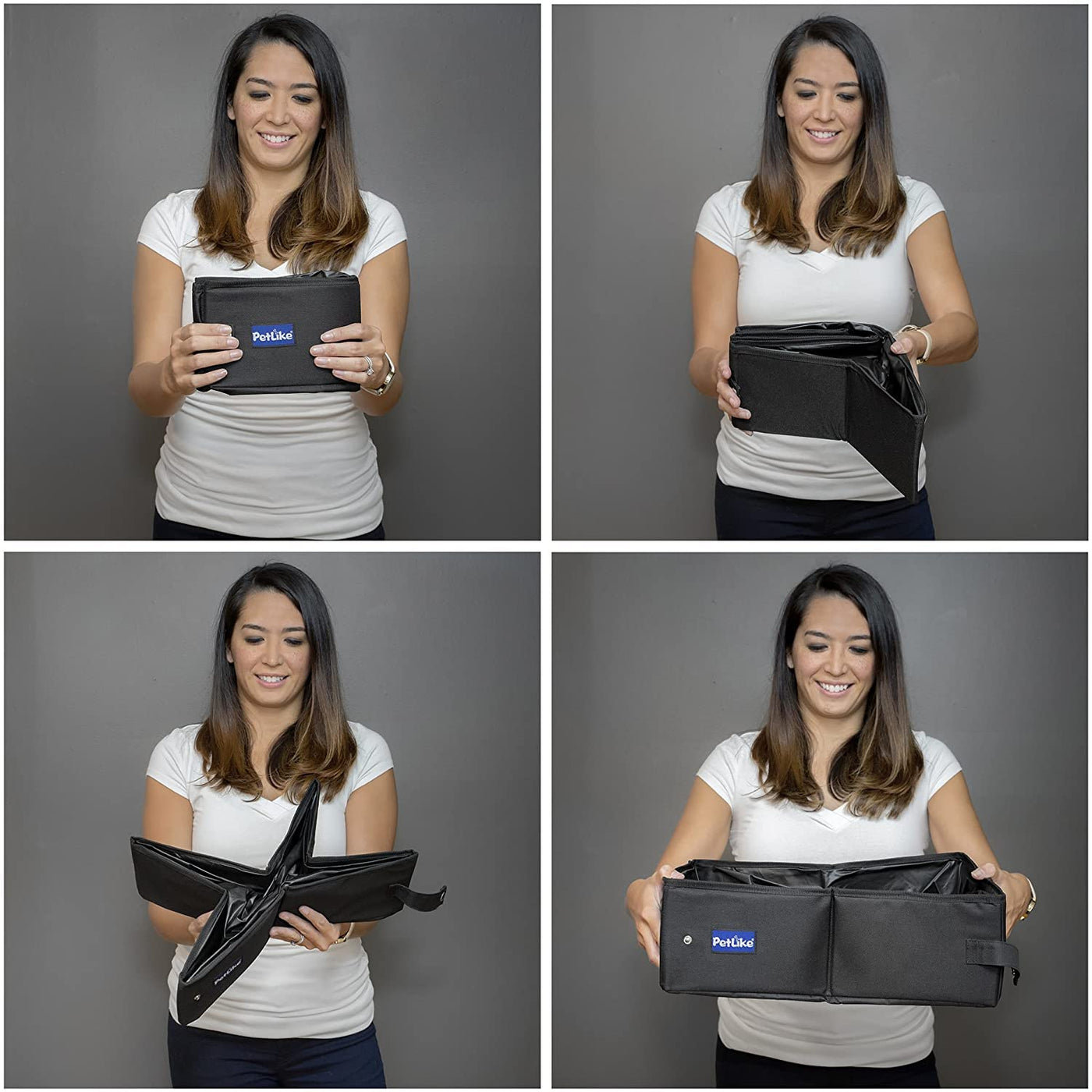 ?PETLIKE COLLAPSIBLE LITTER BOX : There is a plastic PP card between durable Nylon fabric and the leak-proof material. It can be stand up without litter it 's easy for using.