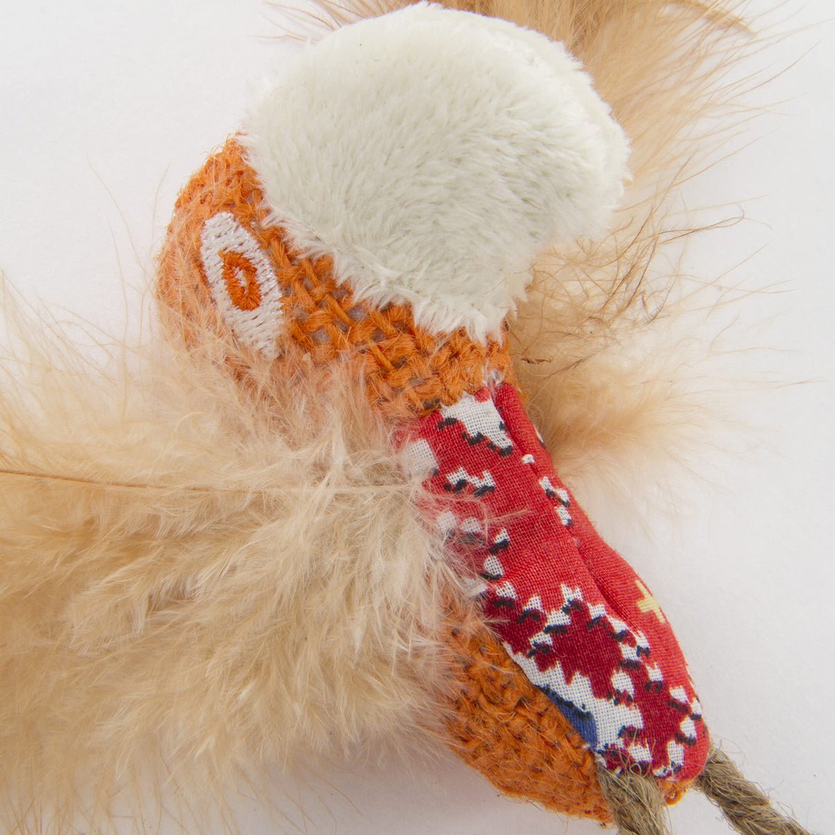 Q: What materials are used in the Petlinks HappyNip Love Birds Cat Toys?A: The Petlinks HappyNip Love Birds Cat Toys are made from a combination of soft plush, burlap, rope, and feathers. These multi-textured materials are designed to mimic the feel of real prey, satisfying your cat's natural hunting instincts.