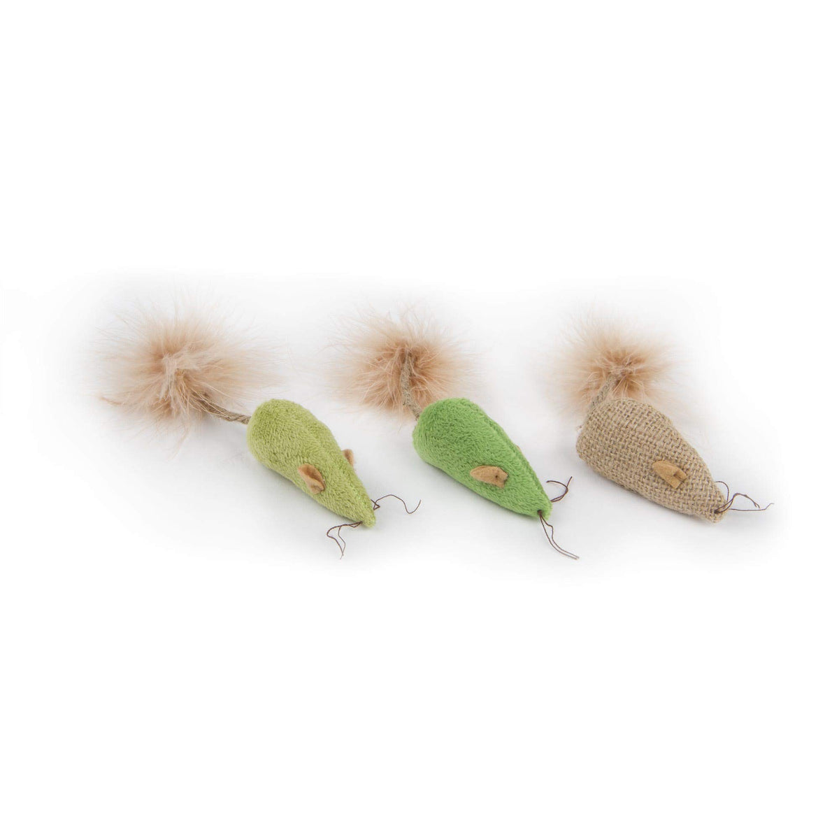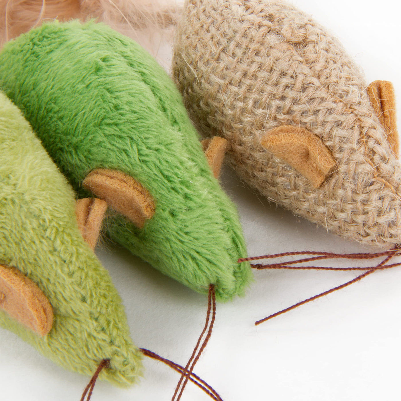 Petlinks 3 Blind Mice Catnip Toys are a trio of mice in soothing pastel green and pink, featuring ultra-soft plush and durable burlap with long fluffy feather tails that will excite your cat the moment you take these from the package. These adorable mice will engage your cat to play on their own or you can toss and dangle them for interactive fun for two. Mimicking the feel of prey with multi-textured bodies and unpredictably fluttering tails, these toys will encourage your cat to pounce, throw, swat, and carry - safely satisfying your cat’s instinct to hunt with a kinder substitute. Petlinks catnip is greener, with minimal stems and no fillers. Catnip naturally stimulates most cats, providing a burst of playful energy, usually followed by peaceful relaxation. It attracts cats like a magnet and can be used to lure cats to toys, scratchers, and bedding. Kittens generally develop a response to catnip after 6-9 months of age. Most cats respond to catnip with a burst of energetic activity followed by a purrfectly calm mellow period. Comes in a set of (3). Petlinks products enhance the way that people and pets live and play together. The innovations behind our thoughtful, fun, and effective products are driven by consumer insights, extensive research, and thorough testing. Kids and pets often share the same space in the home and will have access to each other’s toys. That is why we design products to meet child safety standards; ensuring kids in the home are safe, whether they are two-footed or four-pawed! We utilize recycled and sustainable materials wherever possible. Please read all packaging instructions, warnings and cautions. Packaging may contain small parts; discard after opening.