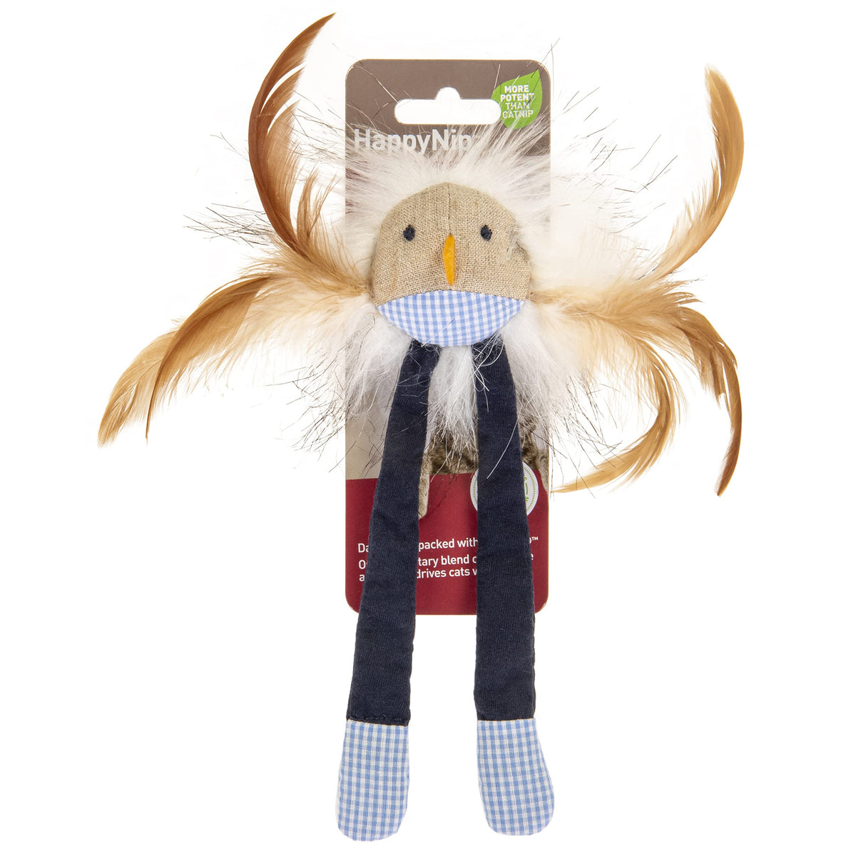 Petlinks Leggy Loon HappyNip Dangler Cat toy works as an interactive dangler toy and durable kick toy. This toy is perfectly sized to kick, wrestle, and cuddle. Surrounded with feathers and long pile plush as well as a durable burlap face, this lightweight toy mimics the feel of prey, encouraging cats to pounce and swat. Dangly stretchy legs end with 100% HappyNip packed toes meeting your cat’s need for excitement. HappyNip is an exciting blend of Silvervine and Catnip, natural and safe non-addictive herbs. Cats who don’t react to catnip, will have a reaction to Silvervine. Making HappyNip ideal for cat’s who need a little extra excitement. Petlinks products enhance the way that people and pets live and play together. The innovations behind our thoughtful, fun and effective products are driven by consumer insights, extensive research, and thorough testing. We design products to child safety standards, as we know kids and cats often share the same space in the home. We utilize sustainable materials wherever possible, and our potent catnip is produced without chemicals or pesticides. All products are backed by our 100% satisfaction guarantee. If for any reason you are not satisfied with our product, please reach out to our customer service team. See back of packaging for more information. Please read all packaging instructions, warnings and cautions upon receipt. Packaging contains small parts, discard after opening.