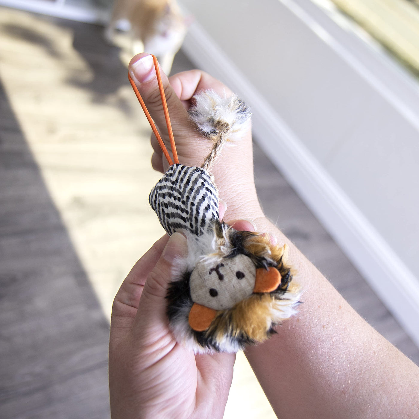 Q: What materials are used in the Petlinks HappyNip Lion Launcher Cat Toy?A: The Petlinks HappyNip Lion Launcher Cat Toy is made of high-quality polyester, featuring soft plush faux fur and rope to mimic the feel of real prey for your cat.