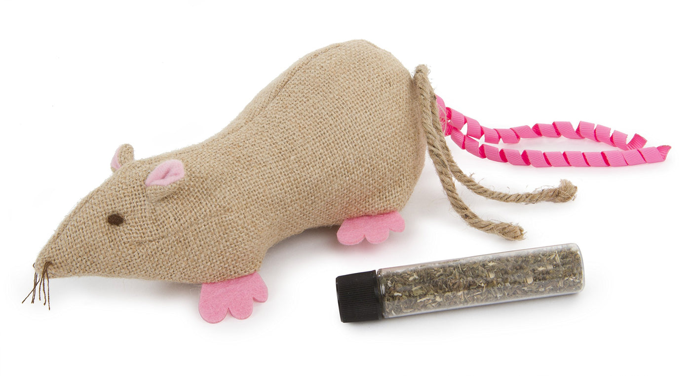 Your cat will have endless fun wrestling Petlinks Jeeper Creepers Refillable Catnip Toy. This burlap rat with ribbons and felt has had a fun update and is one of our best sellers and will look great in your home. The large kick-and-wrestle Jeepers Creepers comes with a tube of Pure Bliss catnip for multiple refills. Refillable catnip toys allow you to refresh the catnip in your cat’s favorite toy for endless fun. Pure Bliss tubes are sealed to keep catnip fresh and have a small opening that makes it easy to refill your toy. Petlinks catnip is greener, with minimal stems and no fillers. Catnip naturally stimulates most cats, providing a burst of playful energy, usually followed by peaceful relaxation. It attracts cats like a magnet and can be used to lure cats to toys, scratchers, and bedding. Kittens generally develop a response to catnip after 6-9 months of age. Most cats respond to catnip with a burst of energetic activity followed by a purrfectly calm mellow period. Petlinks products enhance the way that people and pets live and play together. The innovations behind our thoughtful, fun, and effective products are driven by consumer insights, extensive research, and thorough testing. Kids and pets often share the same space in the home and will have access to each other’s toys. That is why we design products to meet child safety standards; ensuring kids in the home are safe, whether they are two-footed or four-pawed! We utilize recycled and sustainable materials wherever possible. Please read all packaging instructions, warnings and cautions. Packaging may contain small parts; discard after opening.