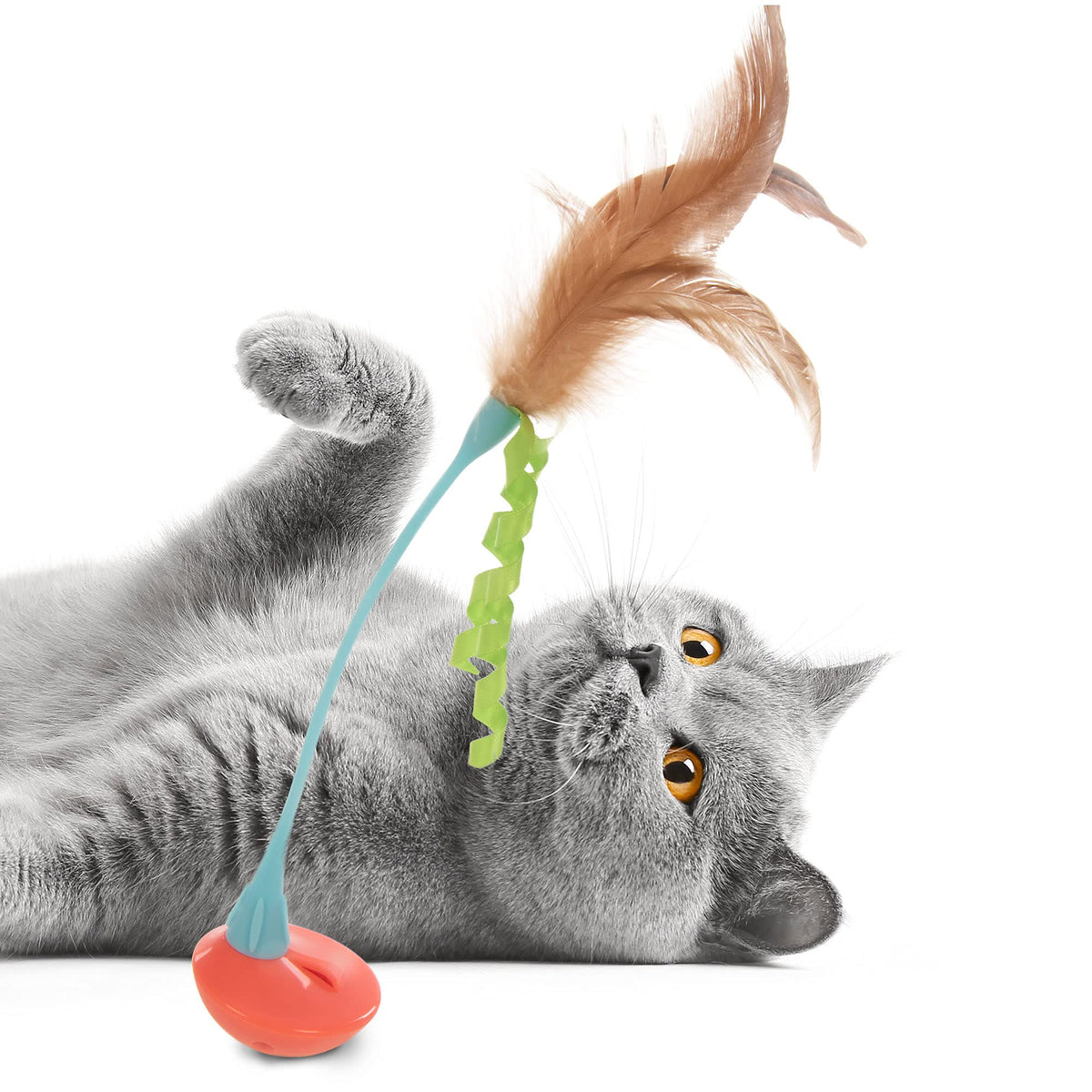 Petlinks Tippy Teaser Self Righting Rocking Feather Cat Toy - Blue/Orange, One Size