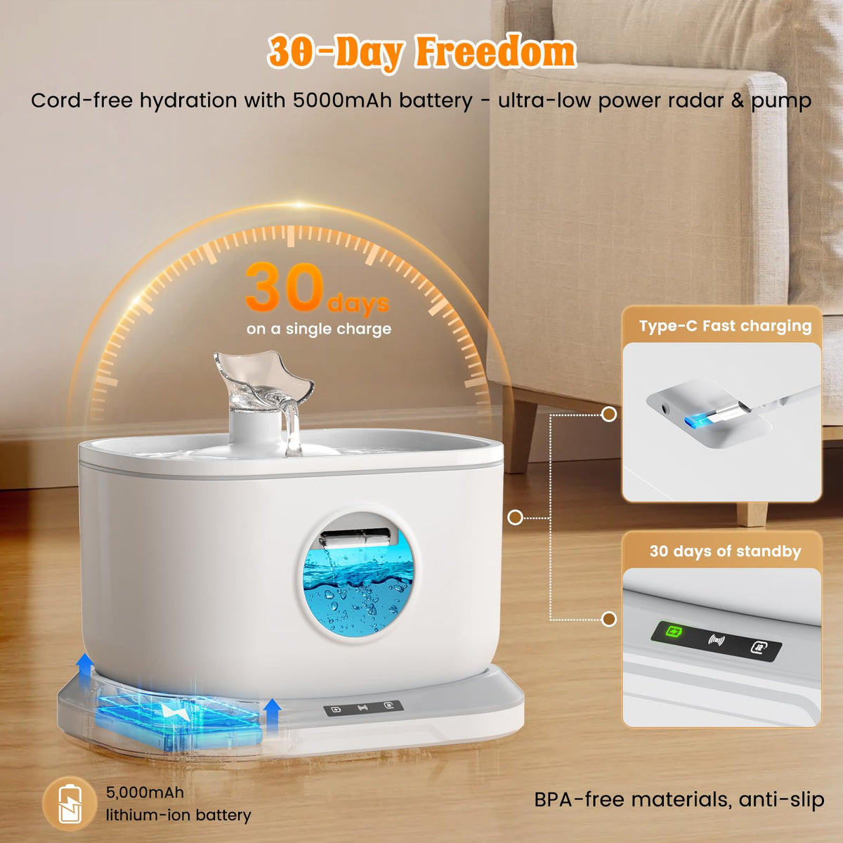 Petlipo Cat Water Fountain Cordless (White, Cordless Cat Fountain White)