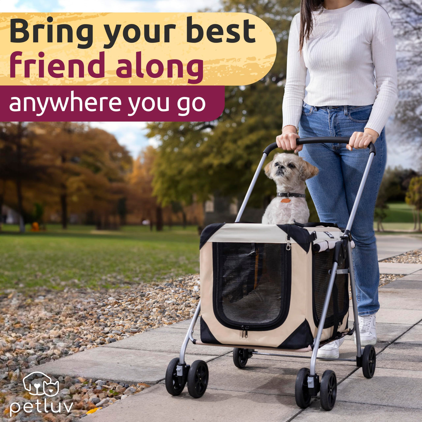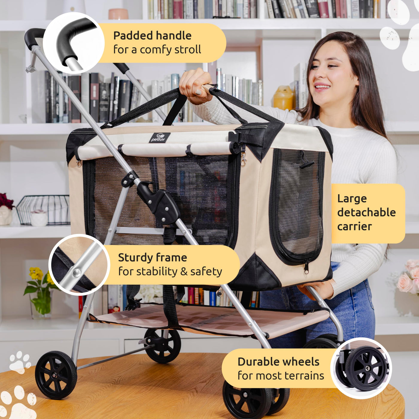 Petluv Pet Stroller, Fits 2 Cats, Small To Medium Dogs (Up To 45 Lbs), Detachable, Soft-Sided Pet Carrier, Collapsible, Includes