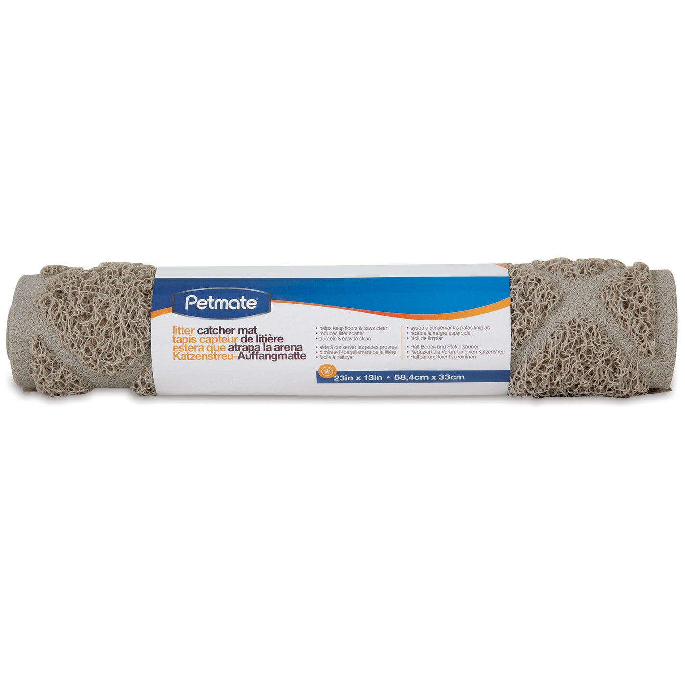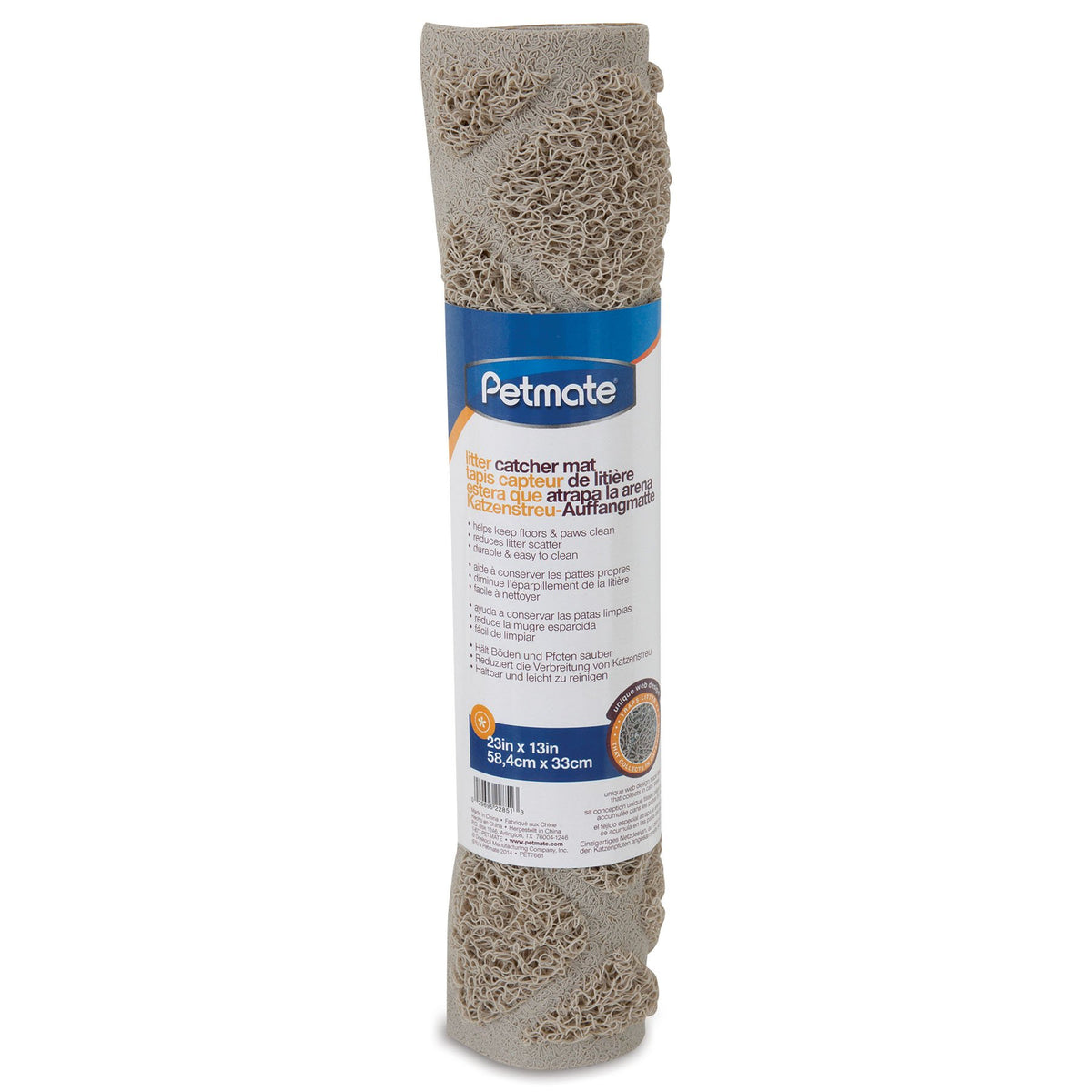 Petmate Litter Mat minimizes litter scatter and keep floors clean. Petmates line of tufted Litter Mats are created from a soft rubberized material that is easy on pawsWebbed design traps litter scatter unique grid design print fits with any home decorCaptures litter dust & scatter to keeps floors clean