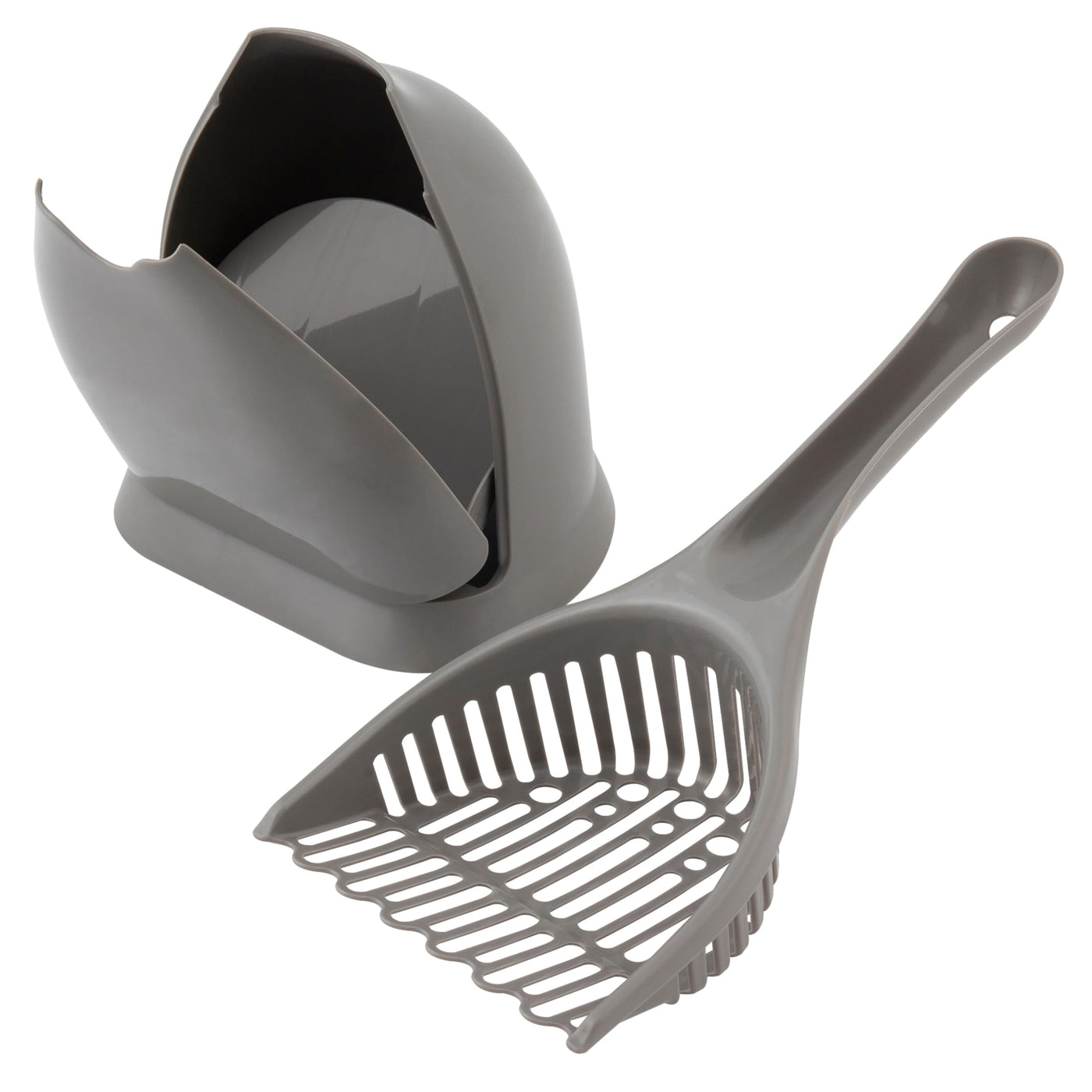 Petmate Scoop N' Hide Cat Litter Scoop With Discreet Litter Scoop Holder, Brushed Nickel