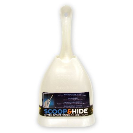 Q: What makes the Petmate Scoop N' Hide Cat Litter Scoop unique?A: The Petmate Scoop N' Hide Cat Litter Scoop features a built-in holder that discreetly conceals the scoop when not in use, helping to trap unpleasant litter odors and providing a stylish solution for your litter box needs.
