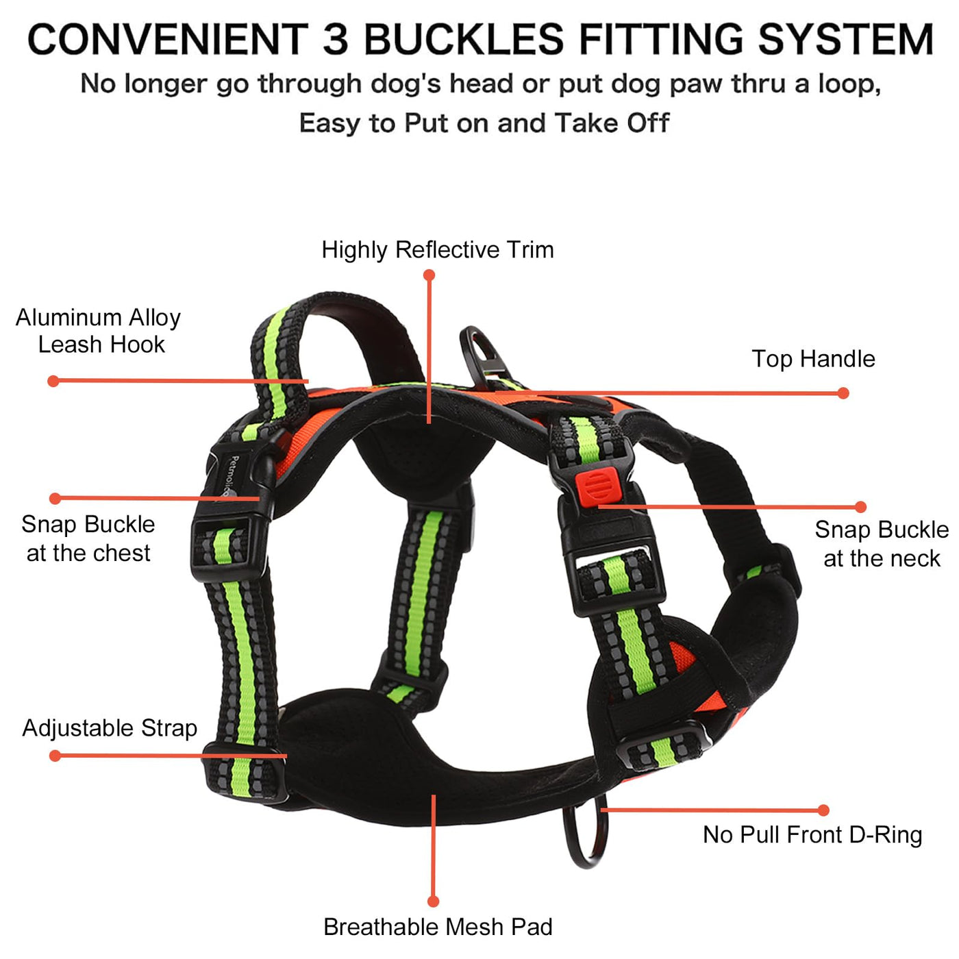 Petmolico No Pull Dog Harness Set, 4 Leash Attchment Easy Control Handle Reflective Vest Dog Harness Small Breed Dogs Harness an