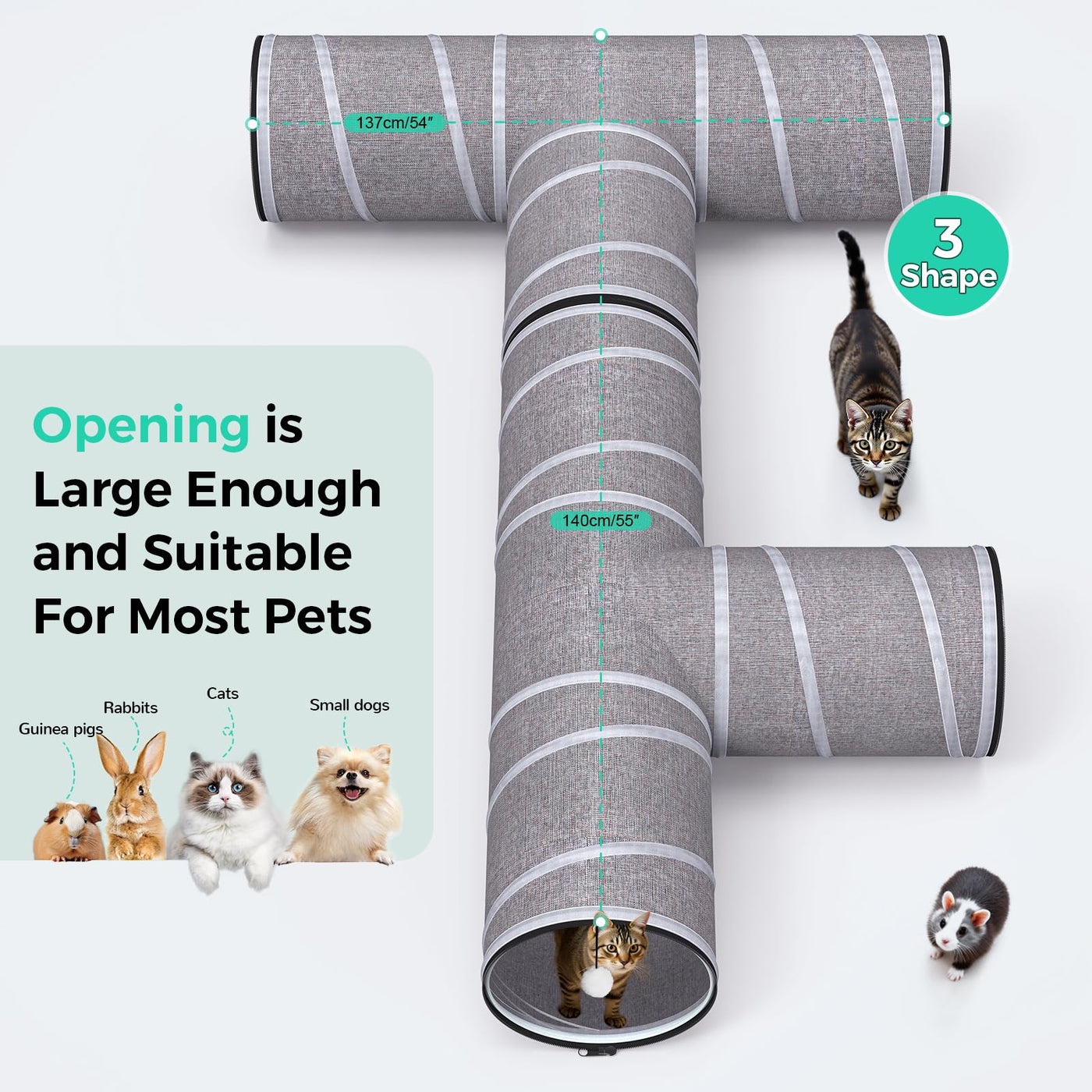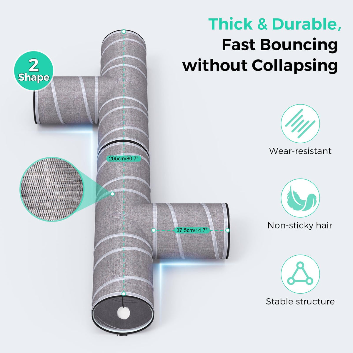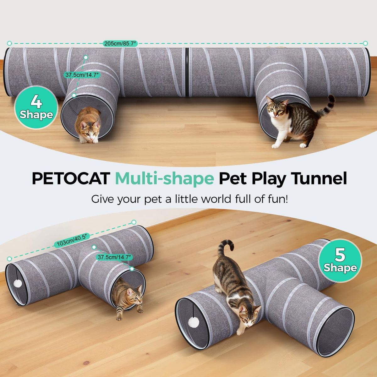 Petocat Cat Tunnel 4 Way With Teaser Wand & 2 Plush Ball, 5 Shapes Available, 54/80.7'' L, H-Shaped Collapsible Pet Play Tube Ma