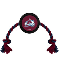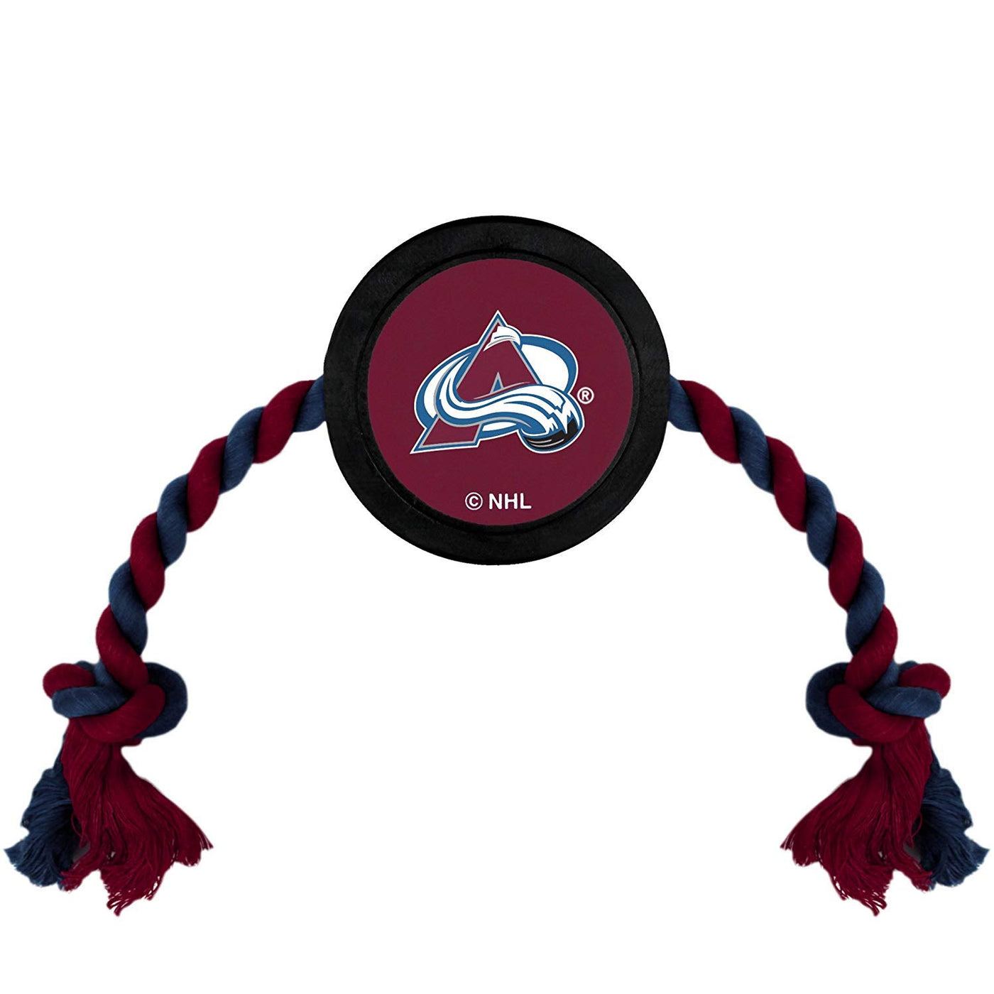 Pets First Dog Rubber Toy With Heavy-Duty Rope Tug, Nhl Colorado Avalanche Puck Toy For Dogs & Cats - Play Hockey With Your Pet!