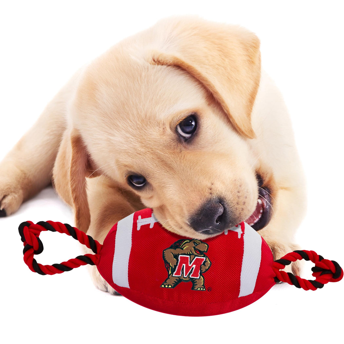 Pets First Maryland Football Dog Toy, Tough Quality Nylon Materials, Strong Pull Ropes, Inner Squeaker, Collegiate Team Color