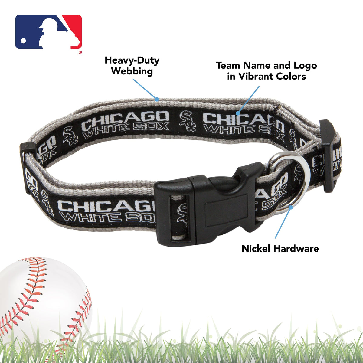 Your pet can now become a #1 fan with this officially licensed MLB PET COLLAR.Looking for a STRONG and DURABLE DOG COLLAR?? Oh, you also want it to be COOL and Fashionable?You can now buy your sporty pup the collar of your favorite MLB team!!!This MLB DOG COLLAR will bring fun and excitement to you as well as to your four legged sports fan!!!Get ready for some BASEBALL with a COOL COLLAR that includes your favorite TEAM NAME and LOGO so that you can stand out in the crowd!This MLB COLLAR is made with Heavy-Duty nylon material to ensure durability!It features your favorite Baseball Team NAME and LOGO in vibrant team color!It has a metal D ring to attach your leash!Designed with breakaway buckle for easy open/close!Hit a HOMERUN with this authentic PET COLLAR so your entire family is ready for game day!SIZES:This BASEBALL COLLAR is available in 4 SIZES. Choose from: Small, Medium, Large and X-LargeThis NEW SPORTS COLLAR is adjustable for a perfect and comfortable fit!NEW: Size X-Large has an Anti-open safety feature for extra safety!â— Please follow the illustrated Size Chart located in image #2 and match your pet's neck to the correct size!This PET COLLAR is Available in 29 MLB Teams:Arizona Diamondbacks, Atlanta Braves, Baltimore Orioles, Boston Red Sox, Chicago Cubs, Chicago White Sox, Cincinnati Reds, Cleveland Indians, Colorado Rockies, Detroit Tigers, Houston Astros, Kansas City Royals, Los Angeles Angels, Los Angeles Dodgers, Miami Marlins, Milwaukee Brewers, Minnesota Twins, New York Mets, New York Yankees, Oakland Athletics, Philadelphia Phillies, Pittsburgh Pirates, Saint Louis Cardinals, San Diego Padres, San Francisco Giants, Seattle Mariners, Tampa Bay Rays, Texas Rangers and Washington Nationals.Choose your team and correct size, and Add to Cart Now!Pets First company has established itself as the largest sports-licensed pet product company in the country.Pets First has gained its reputation in providing every pet owner with premium licensed pet products; from unique and colorful apparel items to fun and playful toys and accessories.Working with the latest technology, our creative designers choose from the highest quality materials to provide durable, unique and innovative pet merchandise.Our factories follow the highest standards of safety guidelines to ensure your pet's security, while providing a long lasting product.