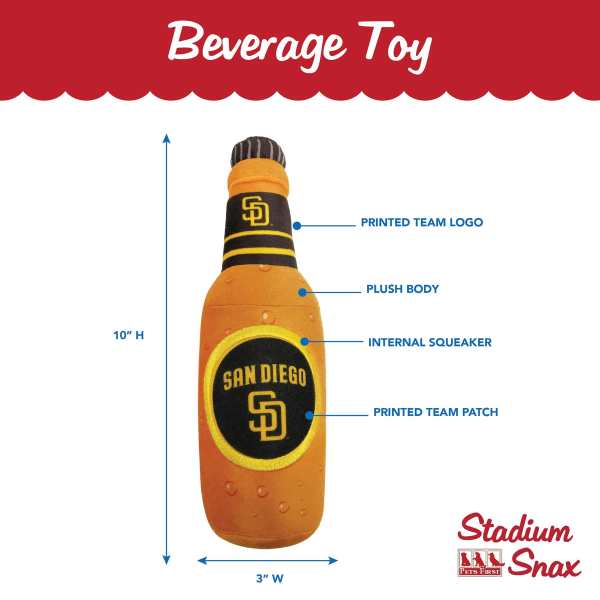 The New Beer Bottle Plush Toy For Dogs & Cats With Your Favorite Mlb Baseball Team Name & Logo Licensed By The Sports League With Inner Squeaker Is Finally Available!When You'Re At The Game/Stadium Drinking Your Beer, Your Pet Can Now Too!While You'Ve Probably Bought Some Dog Toys Before Like Plush Dog Toys Or Rubber Dog Toys Or Nylon Dog Toys Etc..., Some Are Better Than Others... But There Aren'T Many For Those Sports Fans - Well, Now They Are Available! Thanks To Pets First! Yup! Our #1 Plush Hot Toys For Dogs Or Cats Or Kids Feature The Team Logo Of Your Favorite Team In Vibrant Team Colors!Measurements:3 In Diameter X 10 Height, The Perfect Size For Small Dogs, Small Cats, Medium Dogs, Medium Cats, Large Dogs Or Large Cats!Usage:Exercise Is Crucial To Having A Healthy Dog, Healthy Cat, Healthy Pet, So Buy These Plush Snack Toys! They Are Safe & Fun! Great For Training And Chasing!Perfect As A Gift Too!Works Well For Dogs As Well As For Their Owners!Collect Them All:Why Not Get The Whole Mlb Stadium Snax Collection! Your Pet Will Love These Treats While Watching A Game Or Just For Fun!Our Licensed Pet Toys Come In Most Mlb Teams:Atlanta Braves, Boston Red Sox, Chicago Cubs, Chicago White Sox, Cleveland Guardians, Houston Astros, Los Angeles Dodgers, Milwaukee Brewers, New York Yankees, Philadelphia Phillies, Pittsburgh Pirates, Saint Louis Cardinals, San Diego Padres, San Francisco Giants, Seattle Mariners, Toronto Blue Jays, And Washington Nationals.Need More Pet Gear? Love Matching?Hey, While You Buy The Best Dog Toy For Your Pet Don'T Forget To Buy Our Matching Mlb Pet Jersey So That You Can Be Ready For The Next Win!Checkout Our Pets First Mlb Licensed Pet Gear: Mlb Pet Tee Shirts, Mlb Pet Sweaters, Mlb Pet Hoodies, Mlb Pet Dugout Jackets, Mlb Pet Leashes, Mlb Pet Harnesses, Mlb Pet Bandanas, Mlb Pet Toys, Mlb Pet Reversible Bandanas, Mlb Pet Id Tags, Mlb Pet Camouflage Jerseys, Mlb Pet Beds, Mlb Pet Pillows, Mlb Pet Car Seat Covers, Mlb Pet Pink Jerseys, Mlb Cat Collars, Mlb Cat Scratcher Toys... Buy The Whole Mlb Pet Collection Made By Pets First & You Are A Real Sports Fan!Licenses: Pets First Has Secured Licenses With Major League Baseball Mlb, Major League Baseball Players Association Mlbpa, Football, Football Players, National Hockey League Nhl, National Basketball Association Nba, Realtree, Laur Diy, Mls, John Deere & Over 50 Of The Top Colleges In The Country Ncaa.Specialized In Training Pads Too: As Our Customer'S Relationship Continues To Flourish, We'Ve Introduced The Best Training Pee Wee Dog Pads On The Market; Checkout The Pets First Premium Training Pads On Amazon.When You Are A Pet Owner, You Are Part Of The Pets First Family At Pets First We'Ll Always Have You Covered!Wanna Feel Like Your At The Stadium Watching Your Favorite Baseball Players While Drinking A Beer? So Does Your Pet!